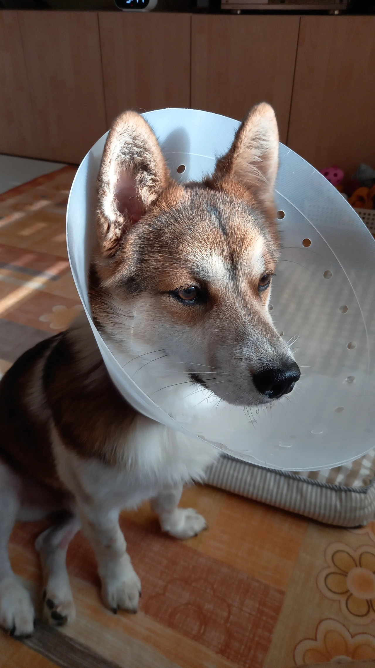 깁스한 붕대를 푼 후 일주일이 지나니 다리 상처가 나아 넥 카라를 풀어주었다. 한결 표정이 편해보인다.