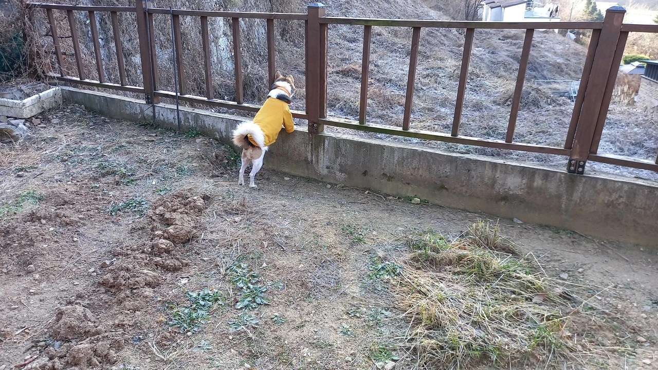 아침, 저녁엔 간단히 뒷밭에 나가 볼일을 본다. 그러더니 자꾸 대문 앞으로 가 앉는다. 나가자는 뜻이다. 집으로 들어가자고 해도 요지부동. 할 수 없이 녀석을 안고 들어간다. 끙~ 투투의 체중은 12kg. 무겁다. 집안에 들여놓으니 이번엔 현관 앞에 앉아 꼼짝을 안 한다.