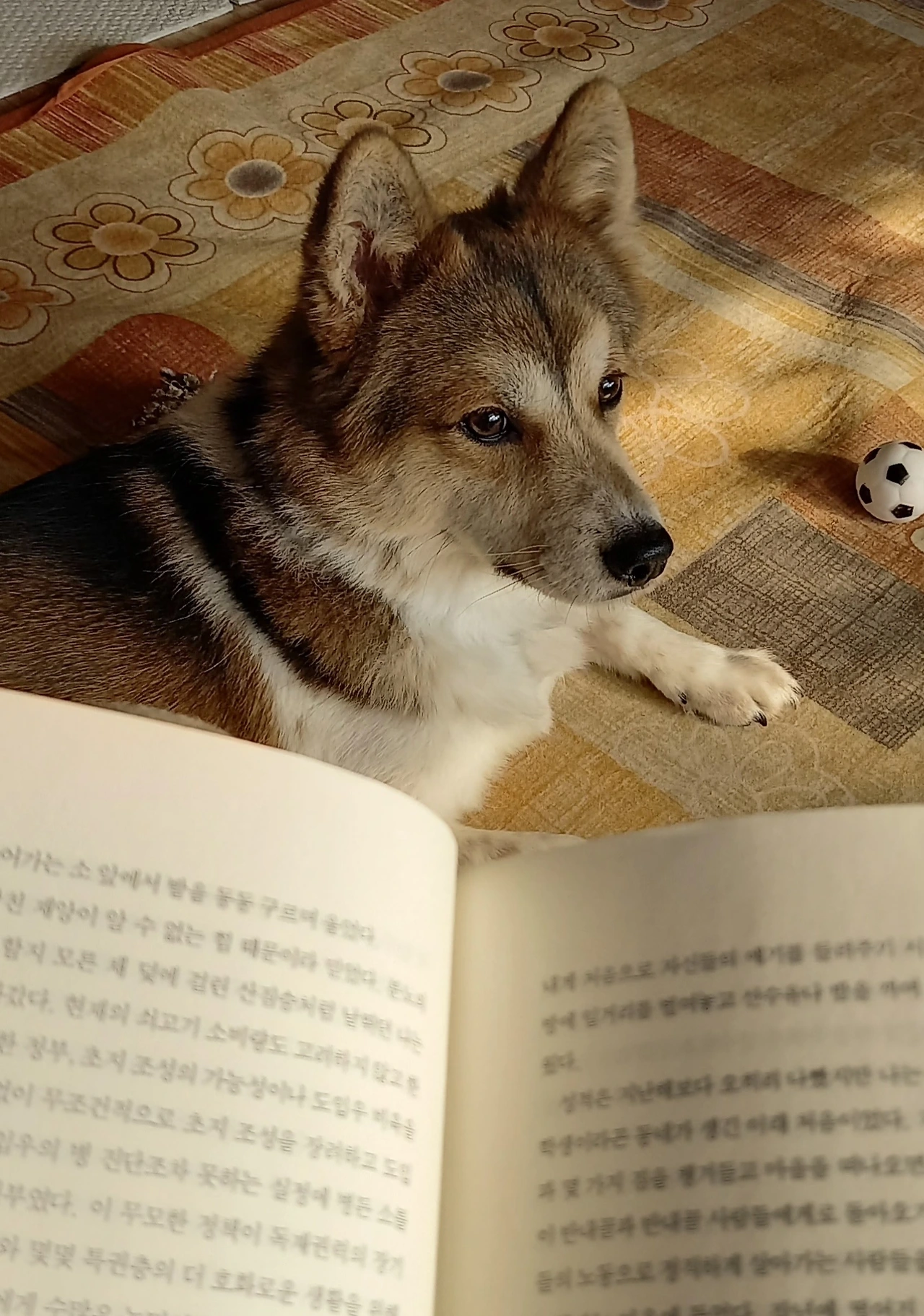 투투는 엄마가 일어나면 일어나고 엄마가 움직이면 움직인다. 엄마가 부엌일을 하면 부엌으로 따라와 앉아있고 엄마가 앉아 책을 보면 발밑에 앉아 창밖을 바라보다가 이마에 햇살을 받고 존다. 투투는 엄마가 일할 때, 수업할 때, 책을 읽거나 그림을 그릴 땐 방해하지 않는다. 가르치지 않았는데 저절로 그렇게 한다. 그런데 엄마가 TV를 볼 땐 장난감을 물어 온다. 엄마가 티브를 보면 이때다 싶어 장난감을 물고 와 엄마 발밑에 떨어뜨리곤 기대를 잔뜩 품은 얼굴로 꼬리를 치며 어서 놀자고 코로 밀어준다. 투투는 상황을 파악하는 천재견이다. 절대 고슴도치 엄마라서 하는 말이 아니다.
