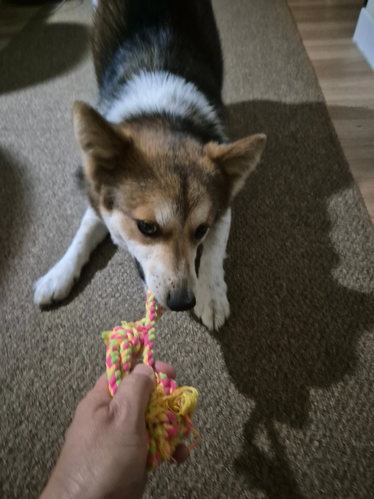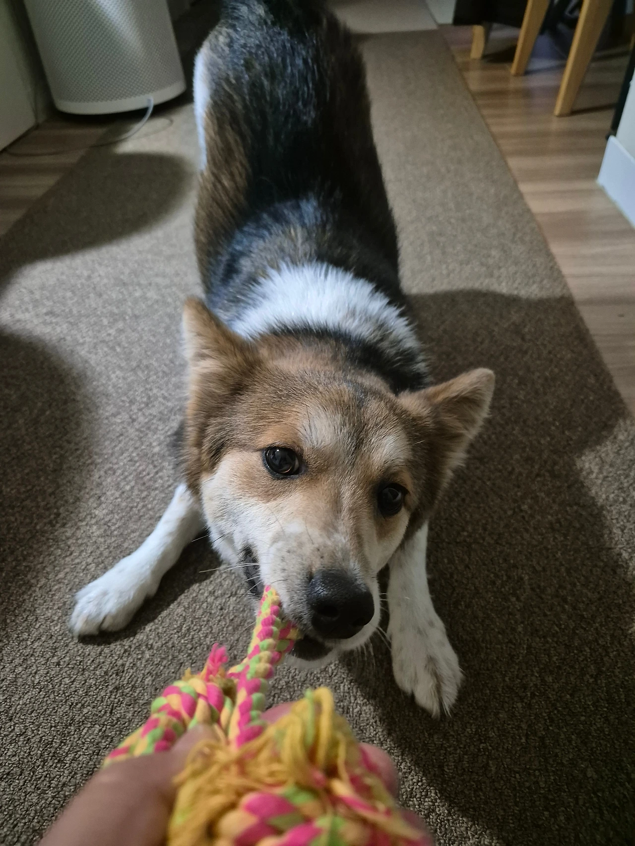밤공기를 잔뜩 묻히고 들어 온 투투는 아직 잘 생각이 없다. 아드레날린 폭발하는 20대 청년이다. 줄을 갖고 와서 숨 고르고 앉은 엄마 무릎에 올려놓는다. "아르릉"" 소리를 내며 놀자고 한다. 에구, 엄마 힘들어. 엄마 좀 쉬면 안 될까? 투투 모른 척 두 눈을 반짝이며 자꾸 줄을 밀어준다. 엄마가 줄을 잡자마자 달려들어 "아르르 아르르(아우, 신나!)" 잡아당긴다. 엄마에게 밀리지 않는 힘이다. 10여분 줄을 당겨 주니 물을 " 촵촵촵" 마시고 소파로 올라간다. 물끄러미 엄마를 바라보던 투투, 눈이 감긴다. 드디어 일과 끝이구나. ^^ 잘 자라, 투투!오늘 하루도 무사했구나!