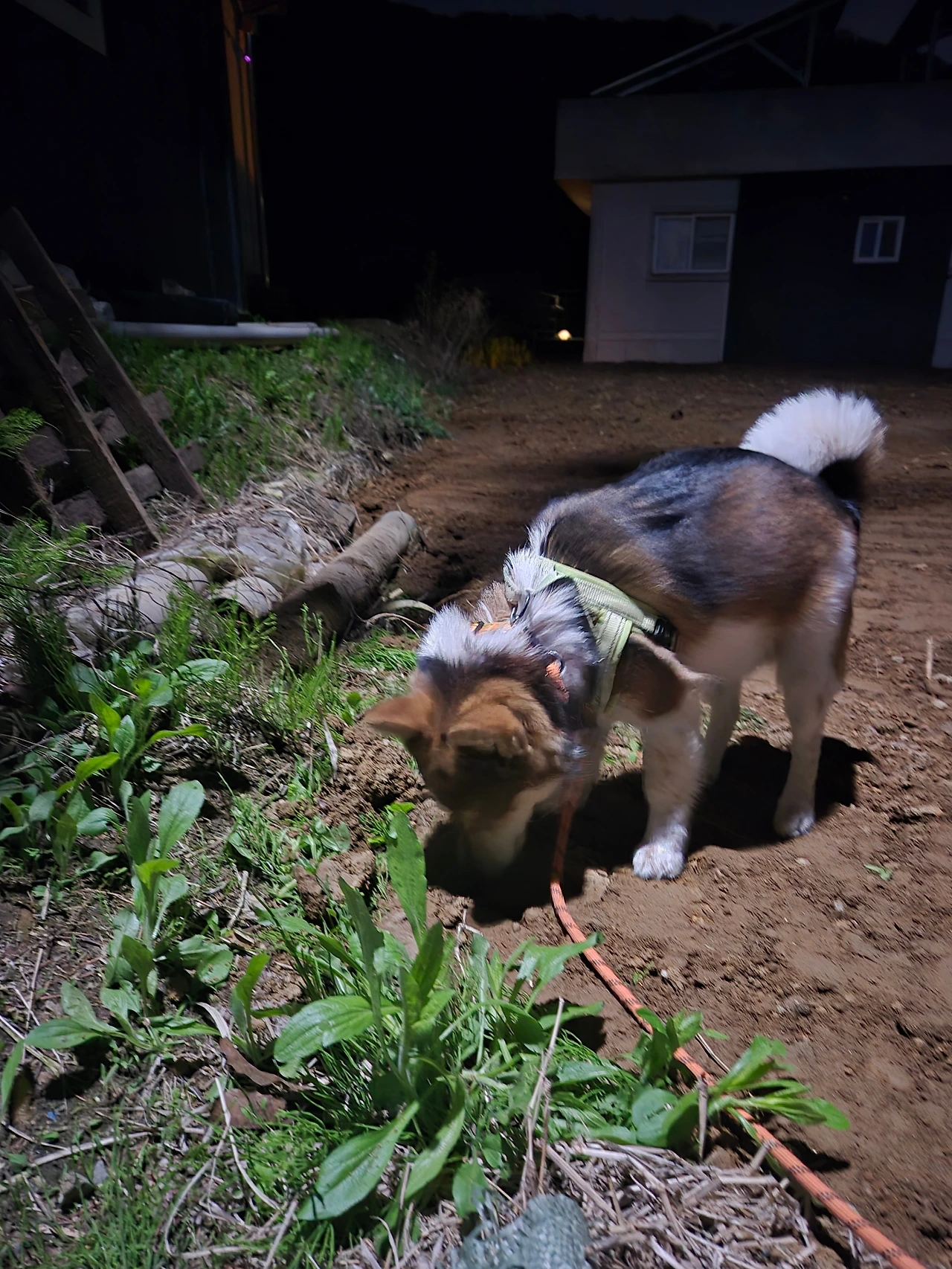 노트북을 덮자 발밑에서 자고 있던 투투는 벌떡 일어나 기지개를 켜며 꼬리를 흔든다. 무언가 원하는 것이 있을 때 하는 행동이다. 엄마는 짐짓 물을 마신다, 책상을 정리한다 하며 엄한 짓을 하고 그런 엄마를 따라다니며 투투는 조바심을 친다. 꼬리를 흔들며 "아으으~응~" 소리를 내더니 급기야 하품을 해댄다. 짓궂은 엄마는 그제야 "나갈까?" 하고 투투는 빙글빙글 돌며 귀를 눕힌 채 휑하니 현관으로 간다. 인내심을 발휘하며 얌전히 줄을 착용하는 투투.