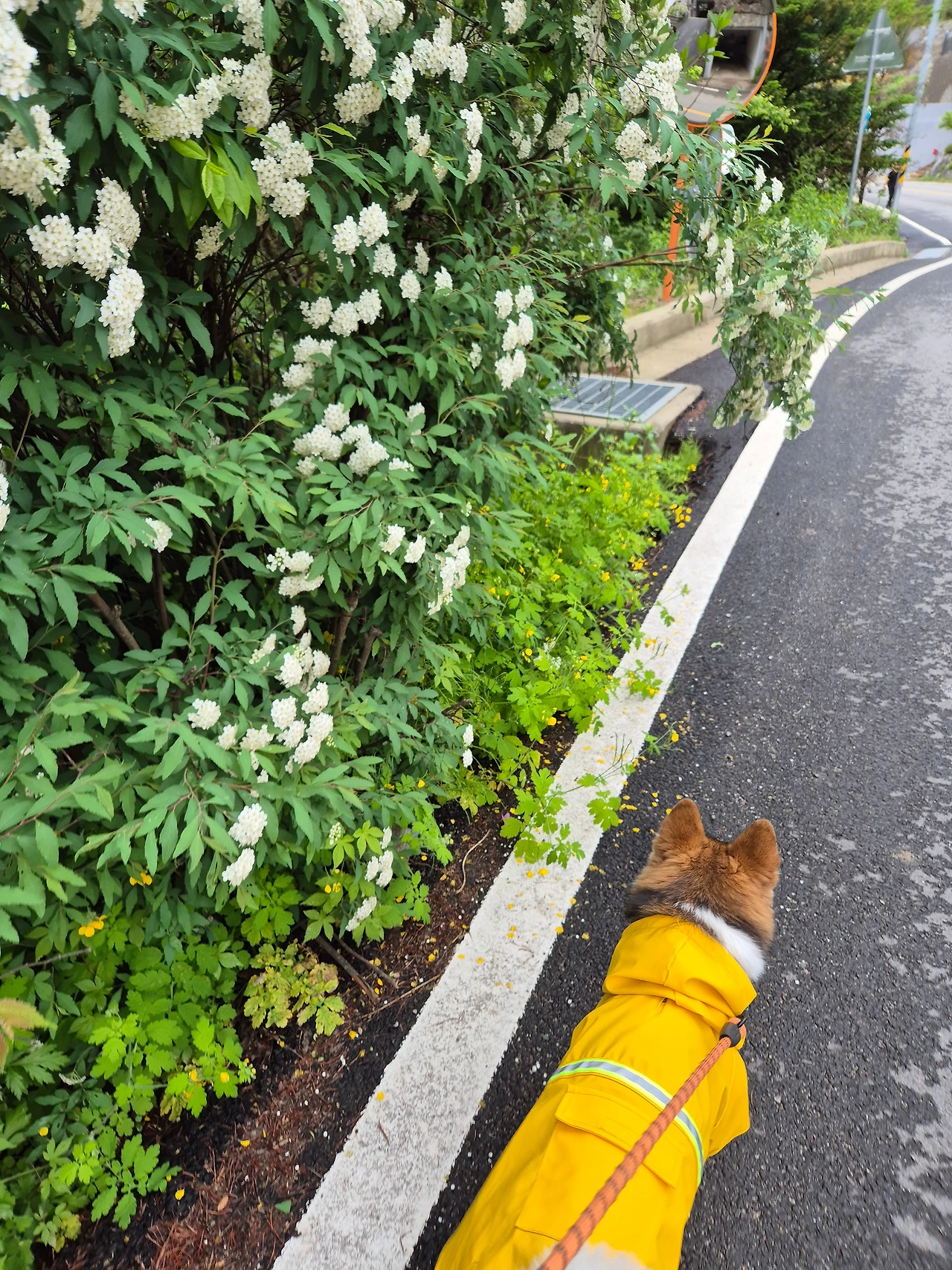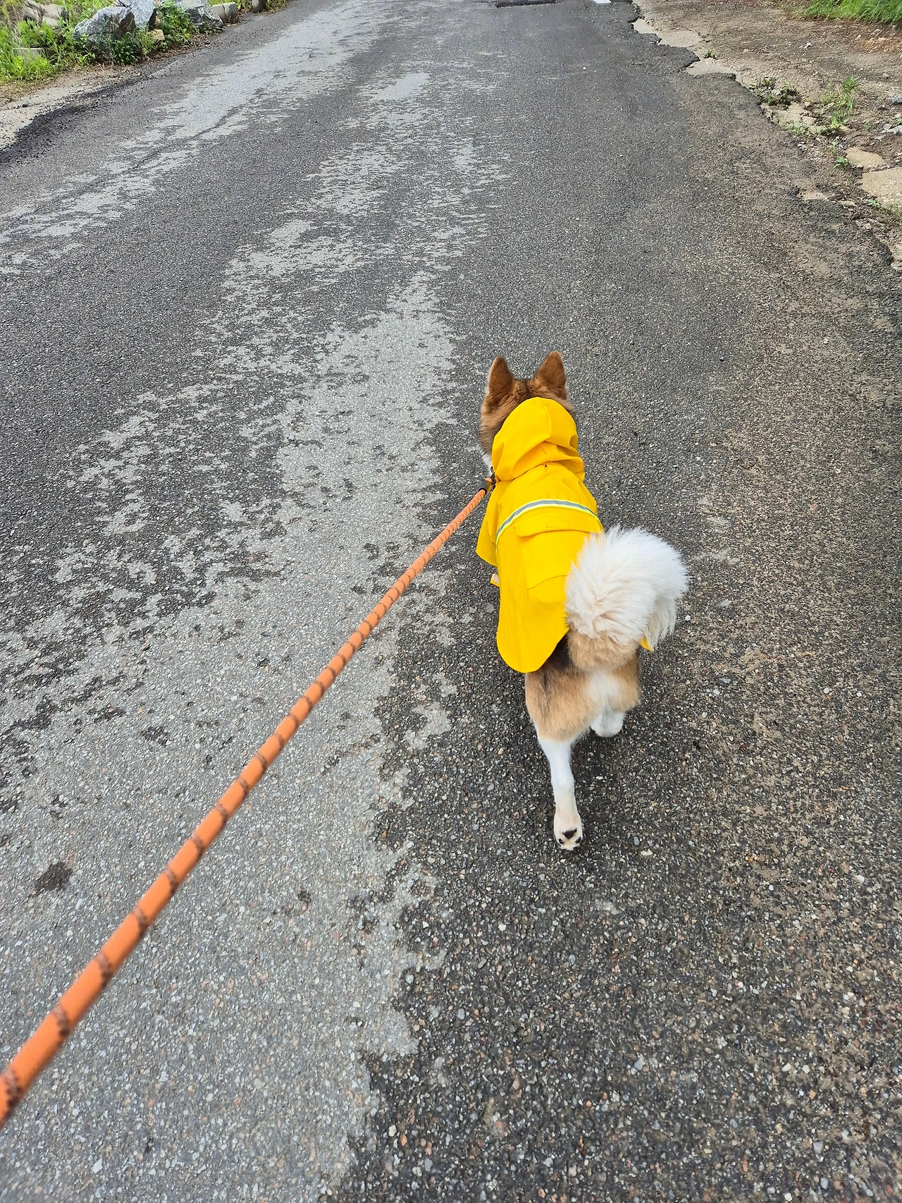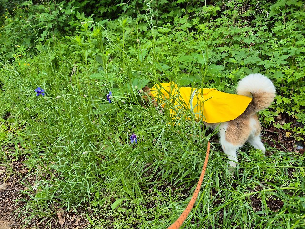 비를 맞은 초록은 더 선명해지고 송홧가루로 누렇던 길도 깨끗이 씻겨나갔다. 풀더미를 찾아 볼일을 보고 다시 휑하니 앞장을 서는 투투.