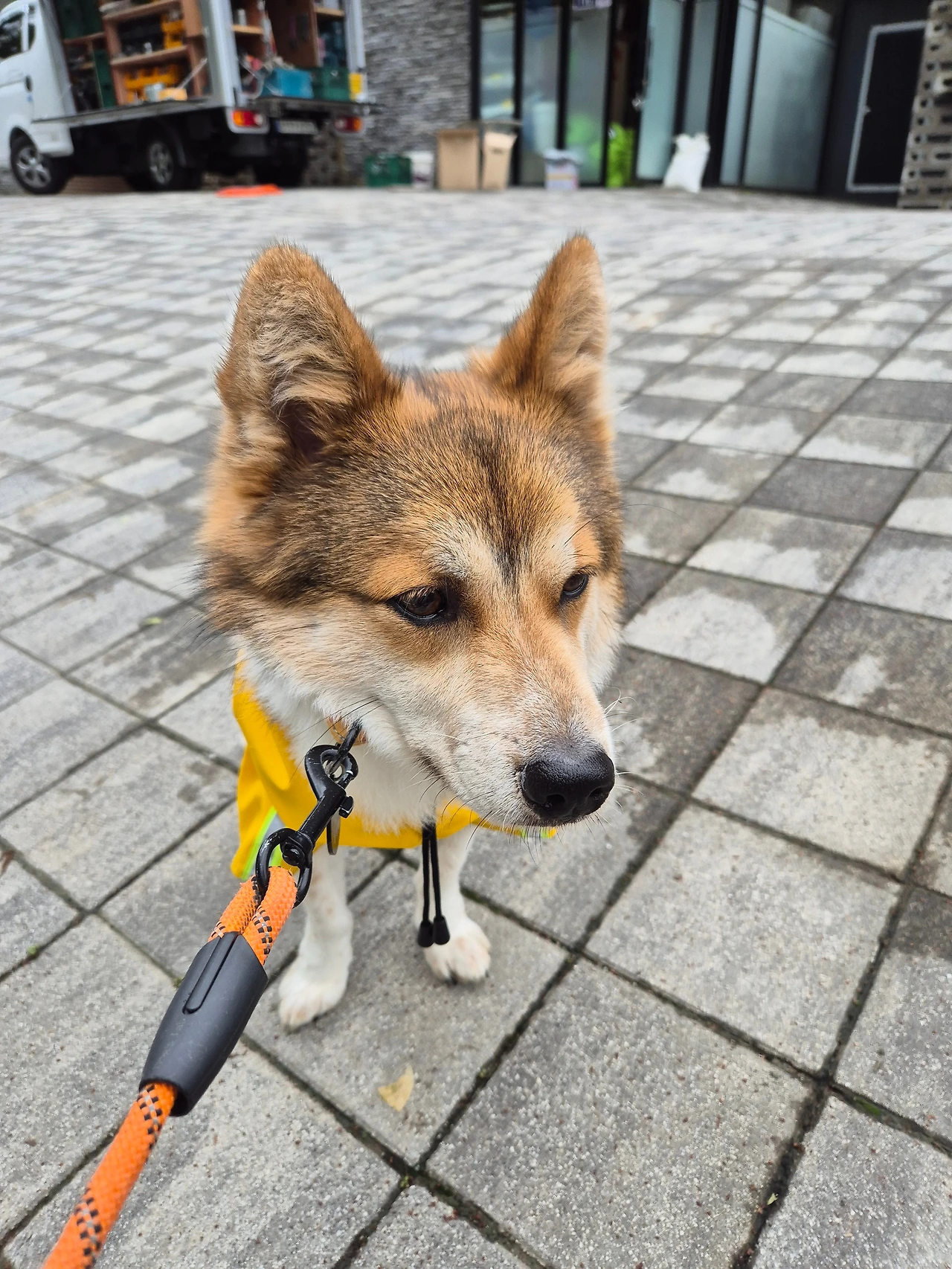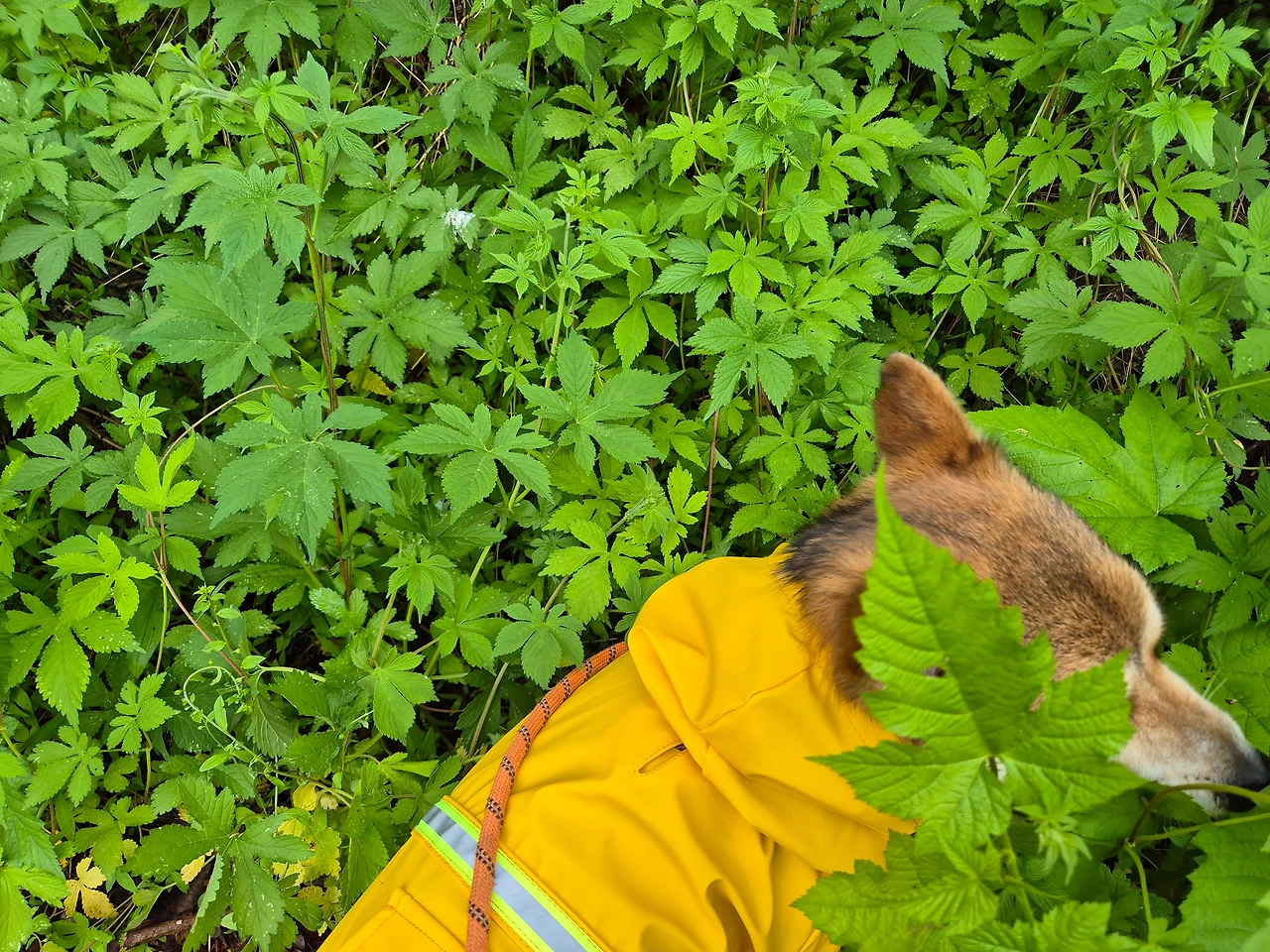 비가 그쳤다. 날은 어둑하고 흐리지만 나가야 한다. 투투의 반응을 보니 비가 내릴 것 같지는 않다. 산책하자는 말에 기뻐하며 앞장서 나가면 신기하게도 대부분 비가 내리지 않는다. 반면에 비가 그쳤는데도 나가자는 말에 시큰둥하거나 테이블 밑으로 도망가면 비는 계속 내린다. 투투는 비의 행방을 아는 것 같다.투투는 자연에 더 가까운 걸까. 비옷을 입히니 피하지 않는다. 녀석, 몹시 나가고 싶군. 싫어하는 비옷도 기꺼이 입고 앞장서 가는 뒤태가 명랑하다.