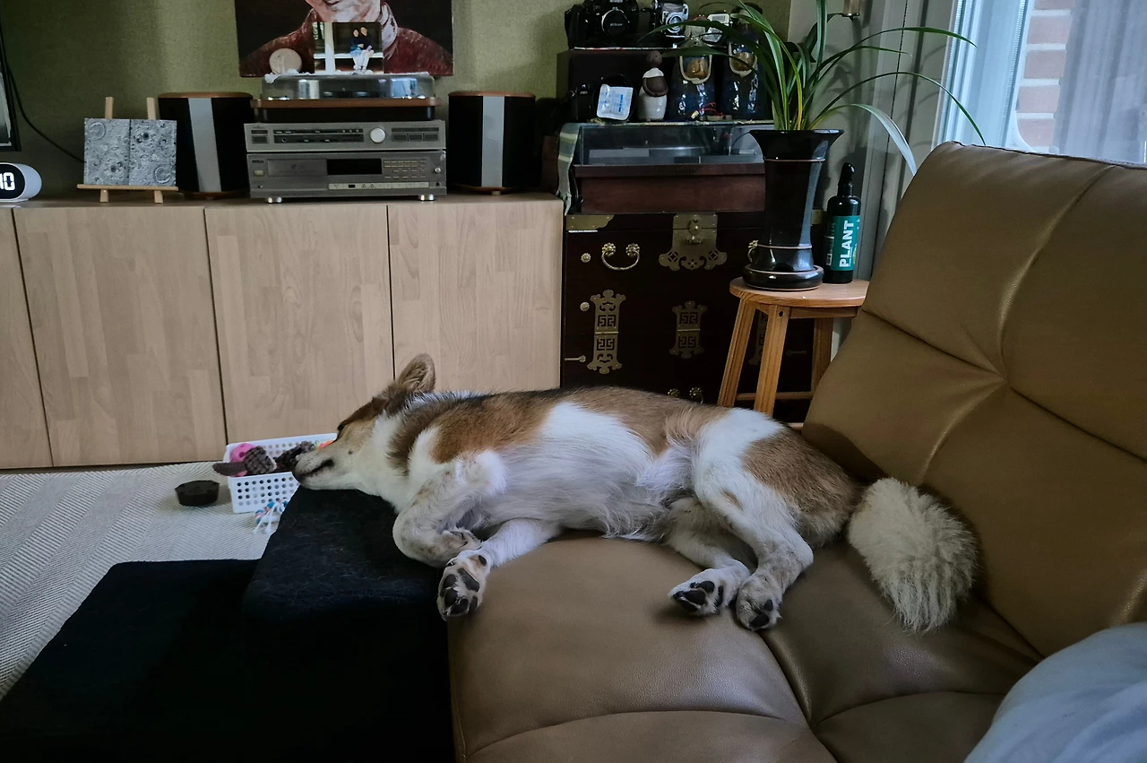 집에 도착하니 뭐가 그렇게 좋은지 겅중거립니다. 산책도 좋지만 집이 더 좋은 가 봅니다. 탱이에게 까불더니 후다닥 집안으로 들어가 화장실 앞에서 기다립니다. 발을 닦고 물을 마시고 남은 간식을 먹은 투투는 공을 물고 "왁왁" 이상한 소리를 내며 뛰어다녔습니다. 물 한 잔 마시고 돌아보니 녀석, 그새 잠이 들었습니다. 열어놓은 창으로 살랑살랑 바람이 불어와 투투의 귀가 팔랑팔랑거립니다.
