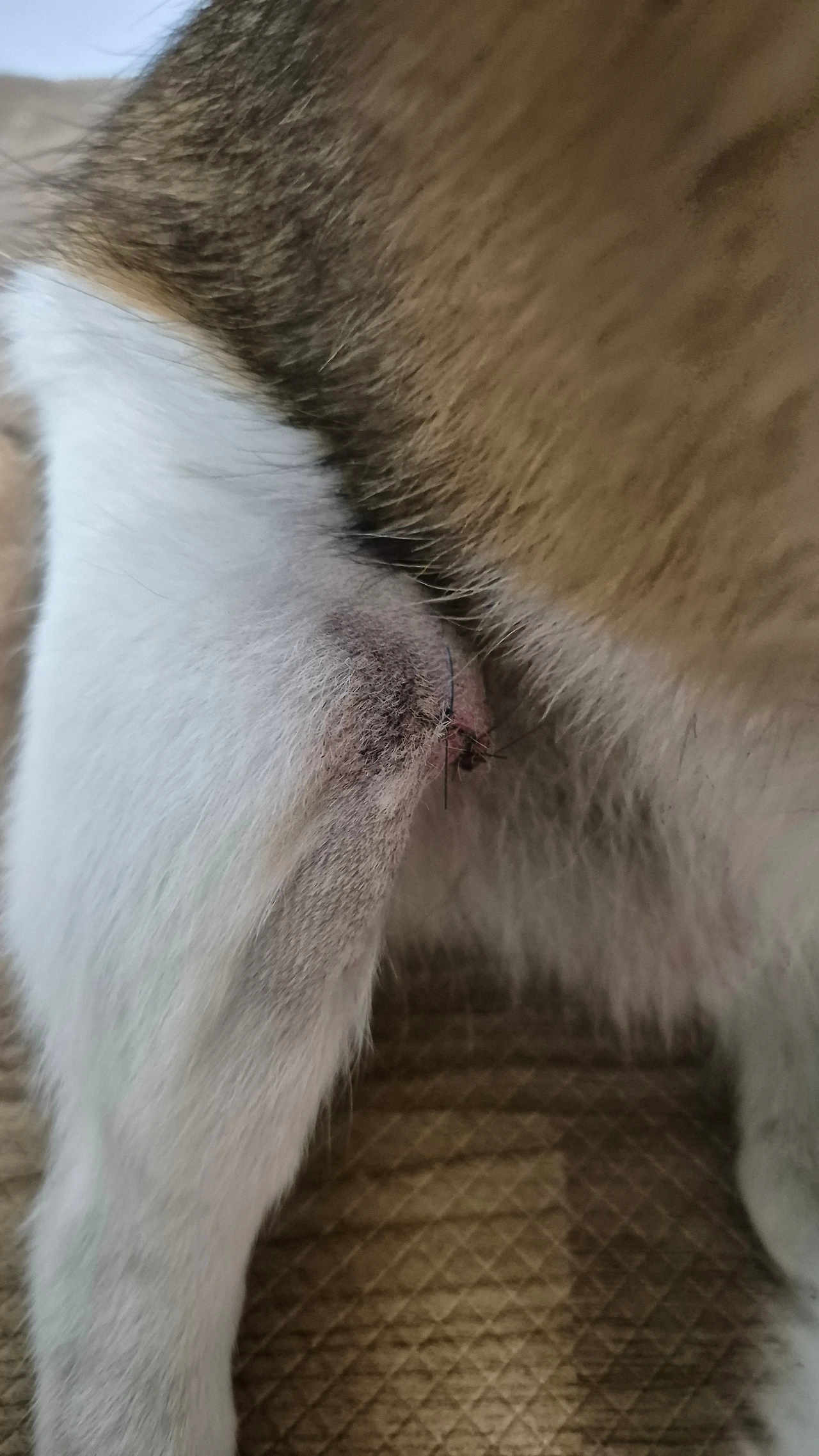 웬만해선 엄마에게 으르렁 거리지 않는 투투인데 이상합니다. 가만히 보고 있으니 오른쪽 뒷다리에 코를 대고 자꾸 냄새를 맡습니다. 쎄한 느낌이 들어 다리를 살펴보니 수술할 때 박아놓은 핀 부위가 부어있고 빨갛게 진물이 흐르고 있었습니다.