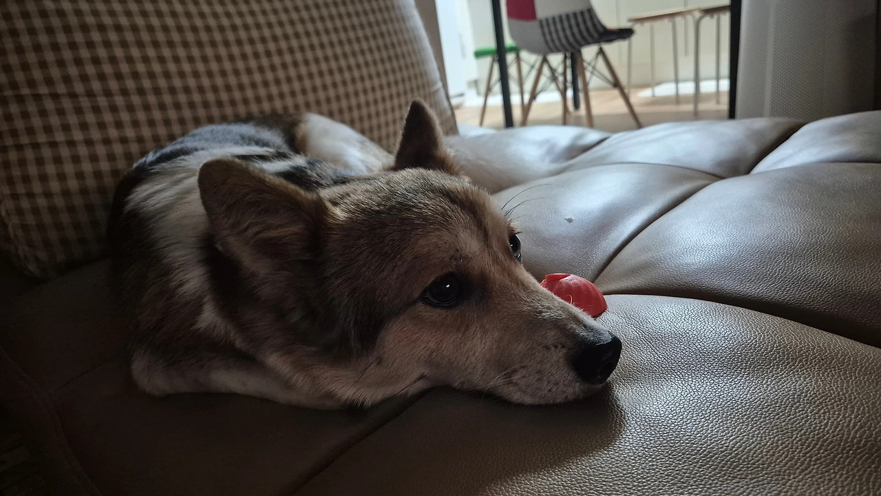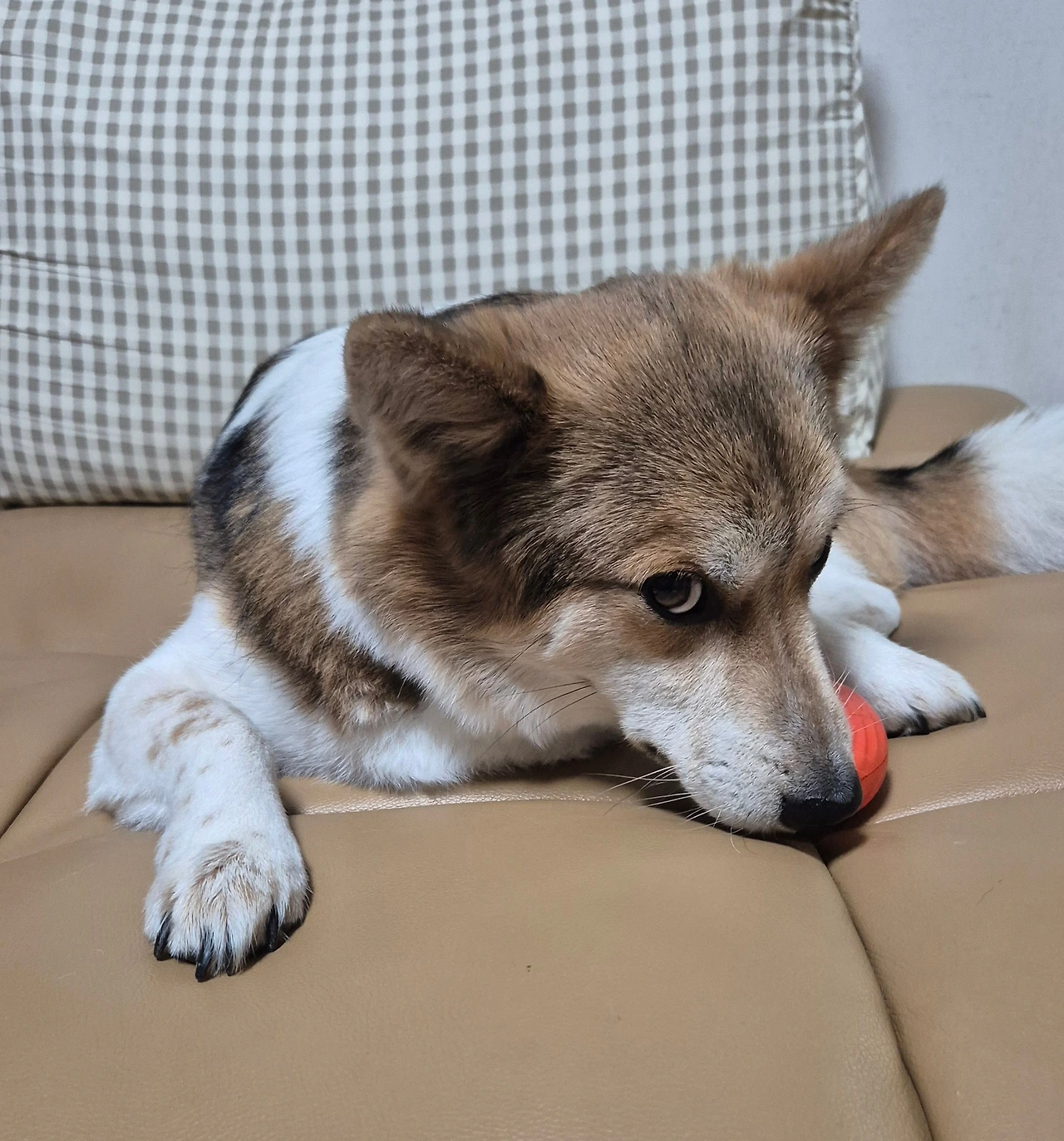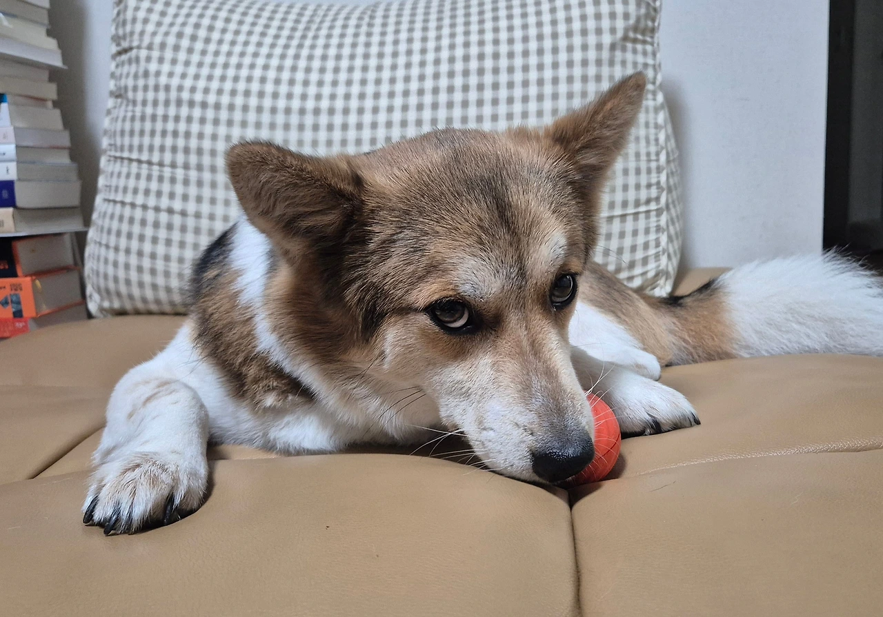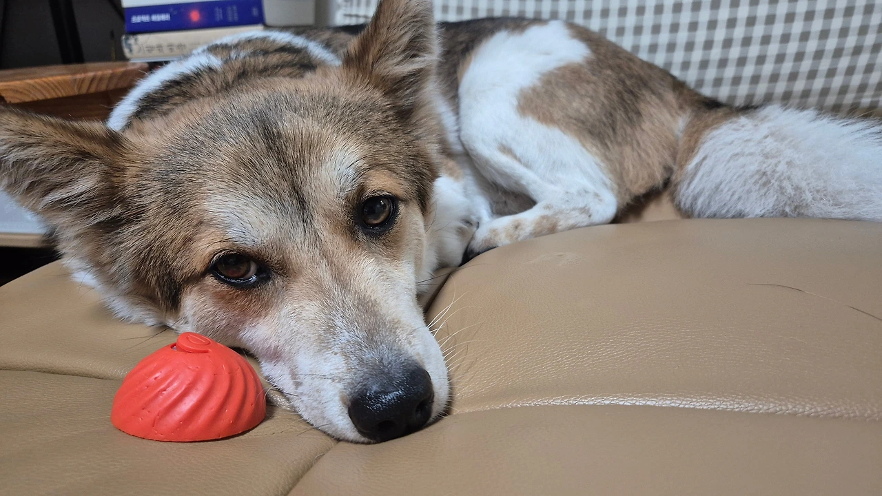한 10분 놀았을까. 투투는 이제 공을 지키기 시작했다. 새 장난감을 주면 한동안은 장난감을 지키느라 간식이 코 앞에 있어도 먹지 않는다. 누구든지 공을 건드리면 가만두지 않겠다는 눈이다. 버튼을 어떻게 눌렀는지 공은 멈춰 버렸다.
