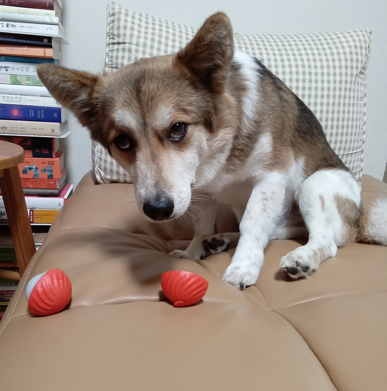 버튼을 알았는지, 투투의 이빨에 눌렸는지 공은 또 스스로 굴러다녔고 투투는 재미나게 쫓아다녔다. 다시 10분쯤 흘렀을까. 아드득 소리가 났다. 입에 물기엔 큰 공을 투투가 물어뜯고 있었다. 너무 딱딱한데 괜찮을까? 하는 생각에