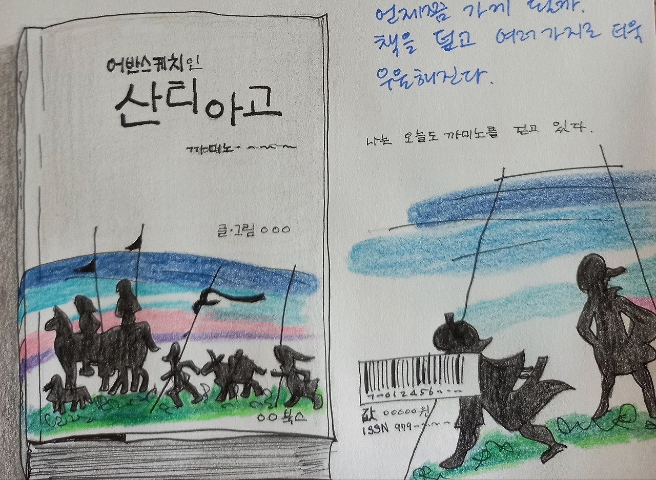 긴 연휴에 선택한 책은 또다시 산티아고다. 이번에는 나의 동경 두 가지- 산티아고 순례와 어반 스케치 -를 한꺼번에 다 이룬 작가의 책이다. 인터넷 검색을 하다가 발견하여 주저 없이 주문하였다. 그리고 불같이 일어나는 질투와 함께 책이 도착한 날로 다 읽었다. 799Km의 여정이 어반 스케치와 함께 실려 있다. 젊지 않은 나이에 산티아고를 걷고 어반 스케치까지 해 낸 작가의 열정에 박수를 보낸다. 누군가는 나의 소망을 이렇게 해내는구나, 싶어 부러웠고 한편으론 그가 나와 비슷한 연배란 생각이 들어 다시 투지가 생긴다.