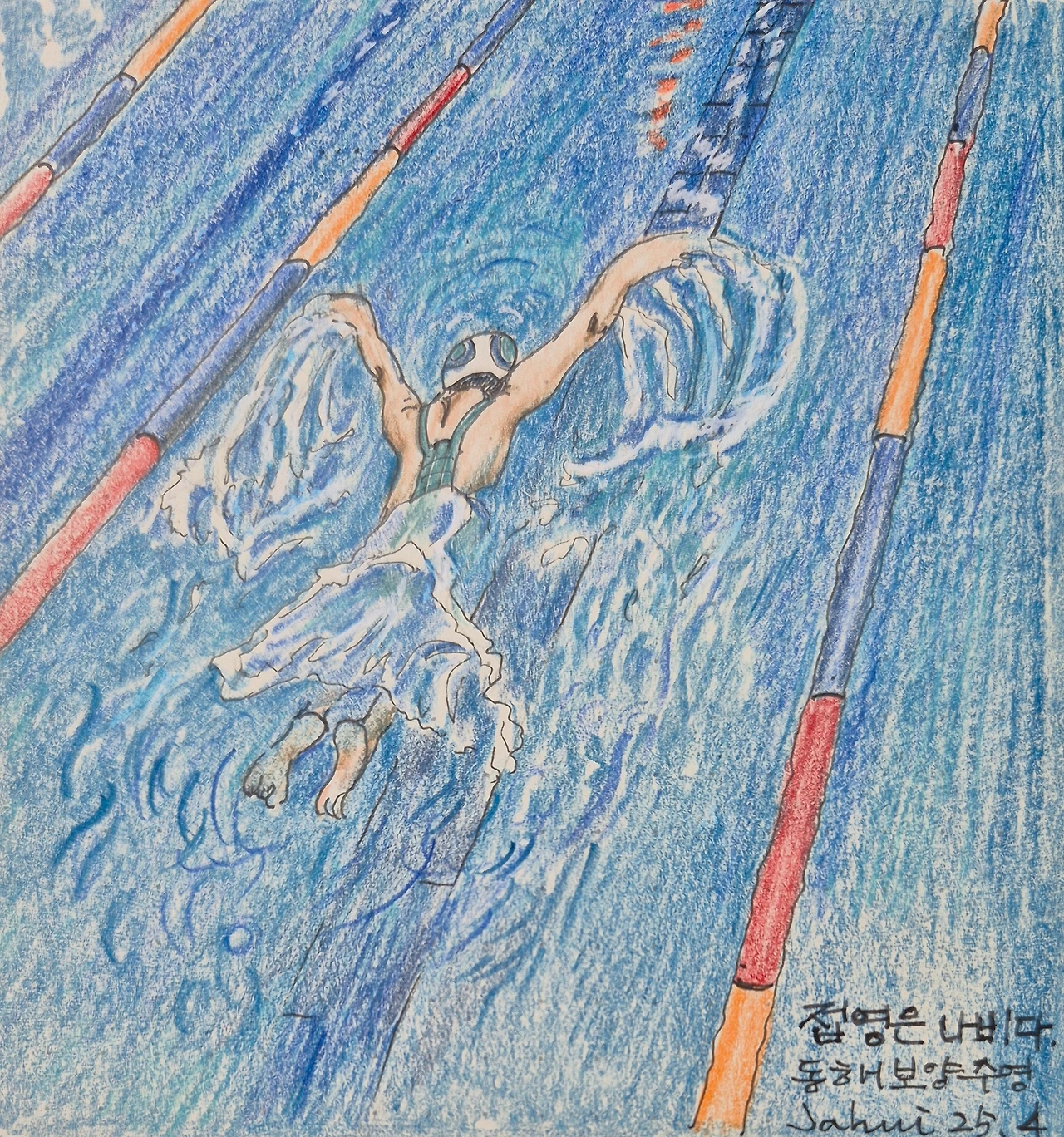 처음 수영을 시작했을 때 접영을 할 수 없다고 생각했었어. 그만큼 접영은 어렵더구나. 다른 영법에 비해 익히는 시간도 오래 걸렸다. 접영은 수영 경험도 많아야 하고 힘도, 기술도 있어야 해낼 수 있기 때문이지. 엄마도 접영을 하기까지 꽤 시간이 걸렸다. 강습 시간에 못한다고 지적도 받고 마음과 달리 제대로 되지 않아 속상했어. 내 몸은 접영을 할 수 없나 보다 하며 남몰래 좌절했지. 그만둘까 하는 생각도 했고. 나이를 크게 의식하며 살진 않지만 접영을 하면서 나이는 무시할 수 없다는 자괴감이 꽤 컸단다.