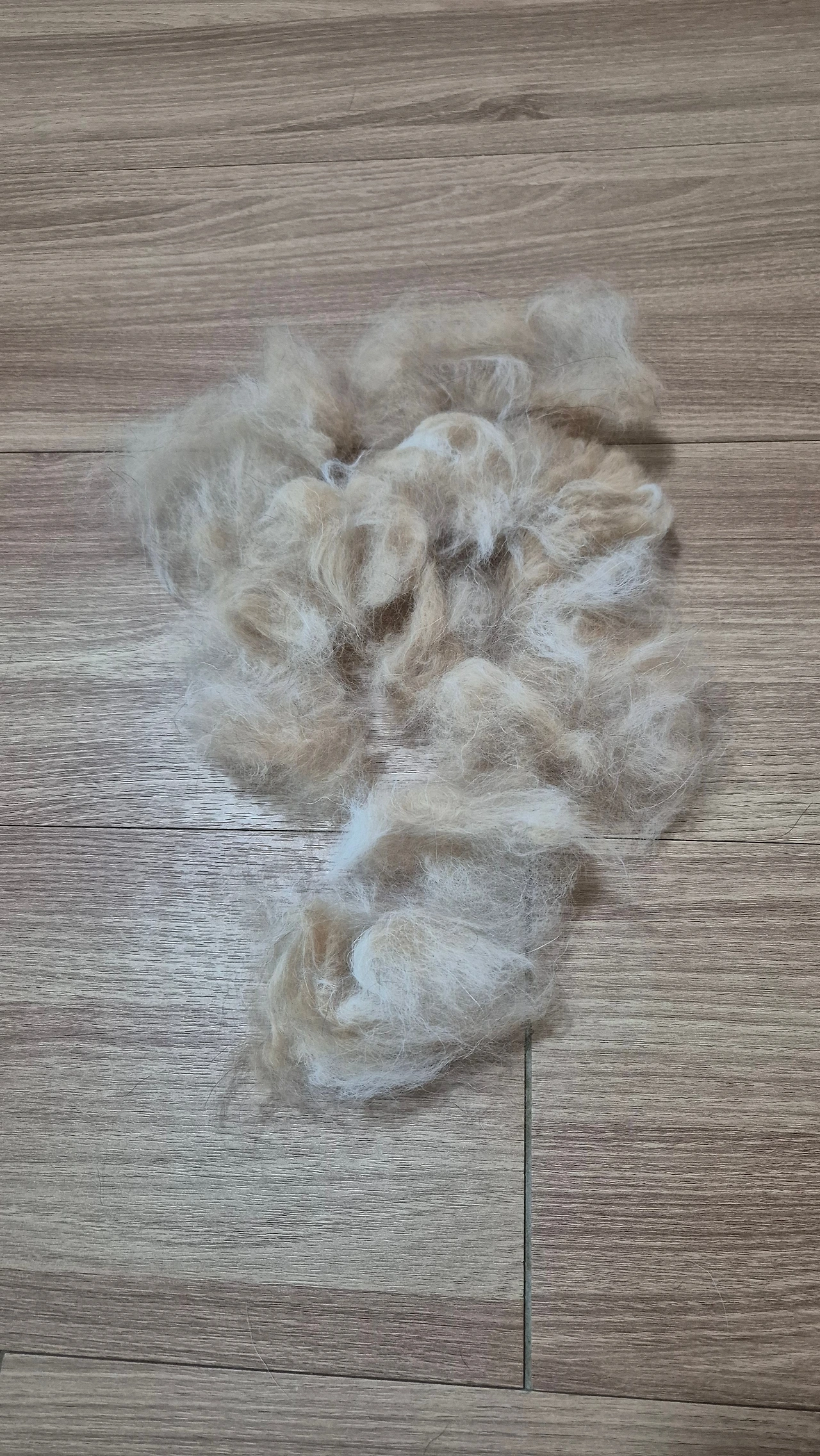 아침에 잠깐 빗고 나온 결과물입니다. 놀라지 마세요. 이것의 세 배쯤 되는 양이 하루 빗을 때마다 나옵니다. 이러다 털이 없는 강아지가 되는 건 아니겠지요.