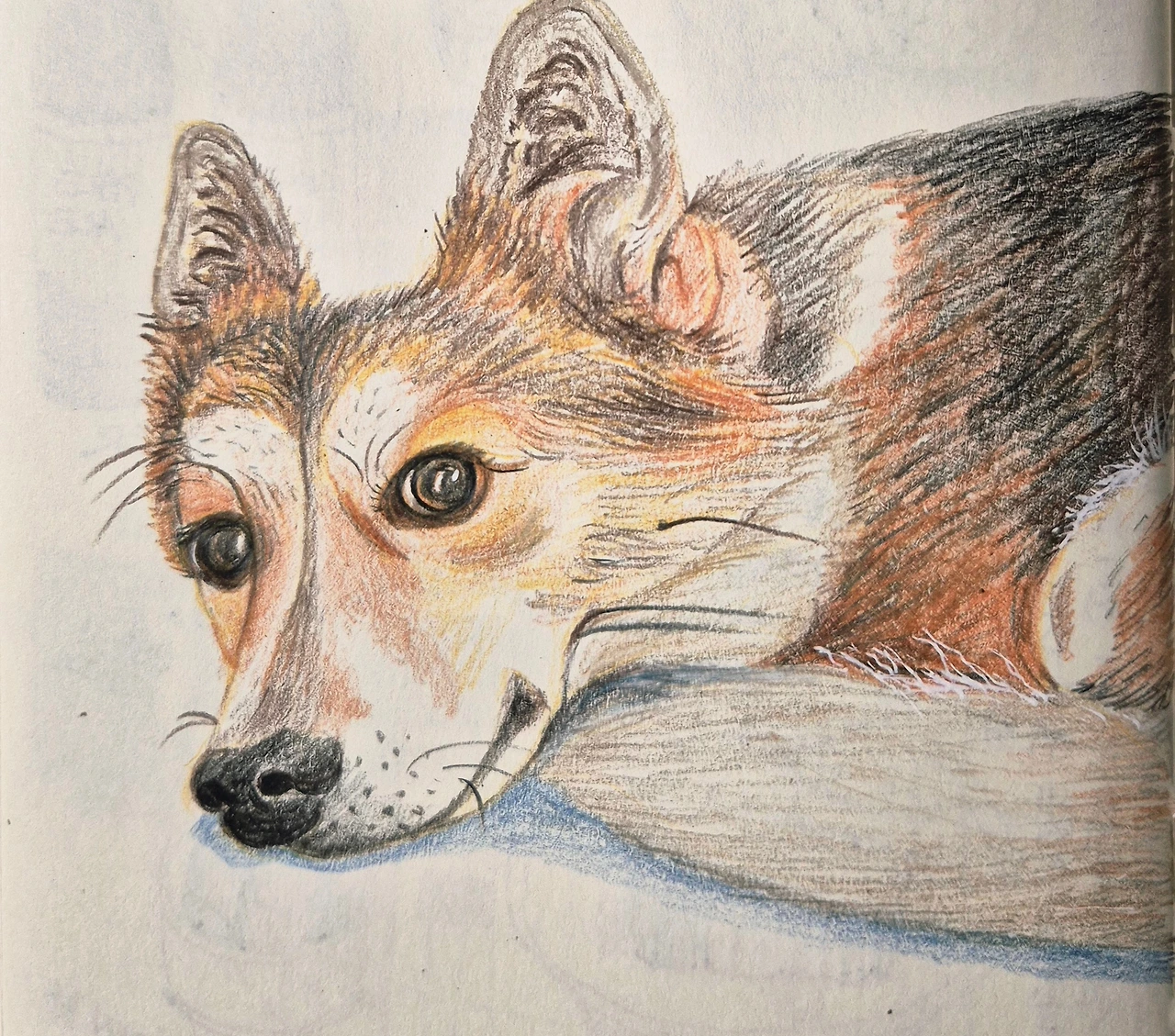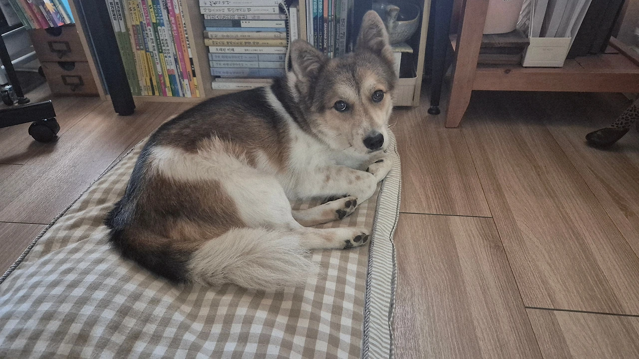 투투가 납작 바닥에 엎드려 있다. 아빠, 엄마의 움직임을 쫓아 눈동자만 움직인다. 그 눈이 다들 바쁘신가 봐, 하고 말하는 것만 같다. 자리에 앉아 뭔가 열중하고 있는데 투투의 시선이 느껴진다. 얼굴을 돌리니 엄마를 빤히 쳐다보고 있다. 엄마도 쳐다보며 장난스레 눈을 깜박거려 본다. 투투 귀가 살짝 움직이고 꼬리가 슬쩍 올라갔다가 사르르 앞으로 말린다. 엄마가 눈을 깜박거리는 것에 반응한 것이다.
