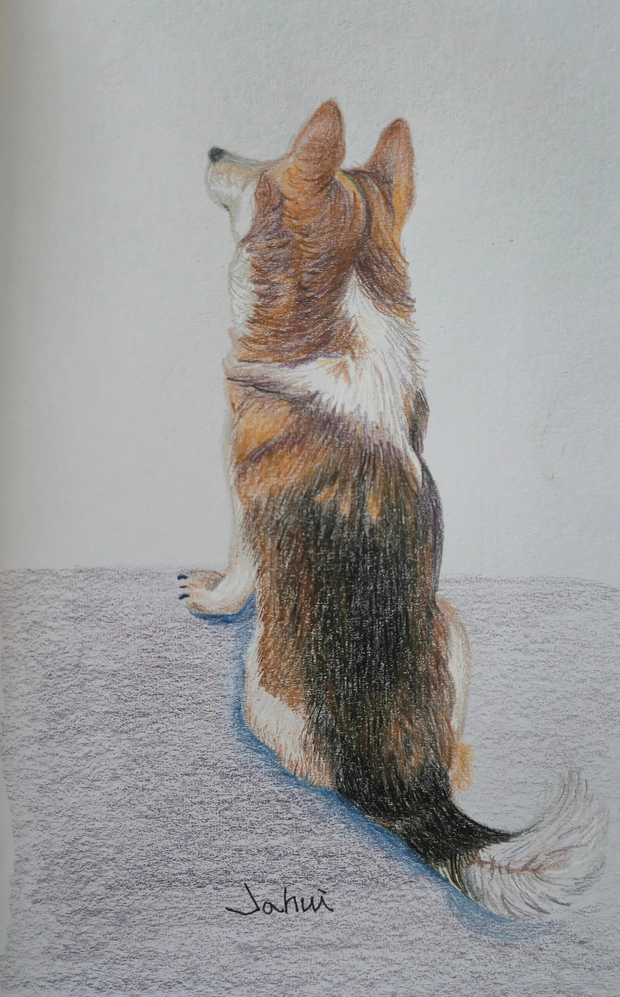 남편이 맥주를 마시는 동안 마른안주의 꼬릿한 냄새에 이끌린 투투가 옆에 가 앉아있다. 너는 먹으면 안 된다고, 저녁밥 먹은 지 금방이라며 타이르던 남편은 투투의 말없는 재촉에 그만 또 헤프게 간식을 내주고 만다. 쯧쯧쯧, 혀를 차면서도 나는 얼른 투투를 그린다. 투투의 일거수일투족이 모두 그림의 소재다. 빛에 따라서 달라지는 투투의 털색과 순간의 표정들을 그리는 일은 신나고 기쁘다. 그림을 망치는 일은 없냐고? 나는 독학자다. 왜 없겠는가. 망치면 망치는 대로 그린다. 그런데 그림을 그릴수록 망치는 일이 줄고 있다. 신기하지 않은가. 투투를 그리고 난 후 "너무 좋아!" 하며 한참을 들여다보는 것은 아주 아주 특별한 기쁨이다. '너무 좋아는 재능'이라고 했는데 나는 아무래도 개 그림에 재능이 있나 보다. 개화가로 거듭나고 있다고 주변에 밝히니 모두 유쾌하게 웃으며 격려해 준다. 우리 집 개 투투를 그리는 시간은 진짜 "너무 좋다!"