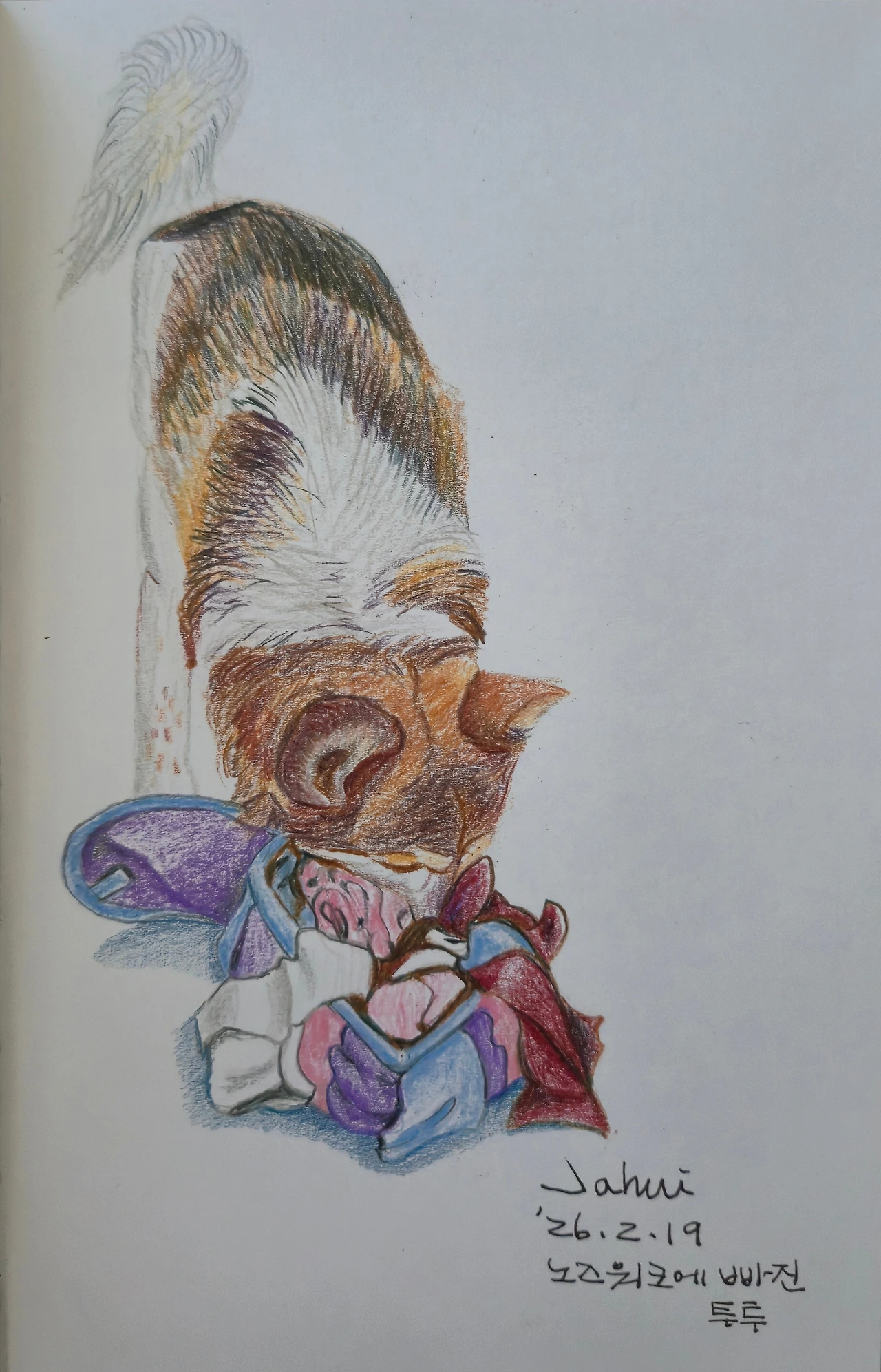 요즘 "너무 좋은" 것은 색연필로 그리는 강아지 그림이다. 우리 집 개 투투를 그리고 있는데 그릴 때마다 진일보하는 실력을 확인한다. 너무 좋다! 마무리가 끝난 그림을 인스타그램에 업로드하면 투투는 인스타에 사는 개가 된다. 이 순간은 너무 좋아서 다른 것은 필요 없어지고 나는 원하는 것이 하나도 없는 사람이 되고 만다.