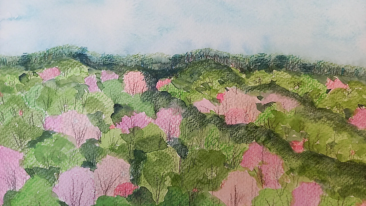 파릇하게 산 꼭대기부터 나기 시작하는 새순의 연두색은 산 아래쪽으로 번지고 있다. 단풍도 산 위쪽부터 들기 시작하는데 새순도 위쪽부터 시작하여 아래로 번진다.