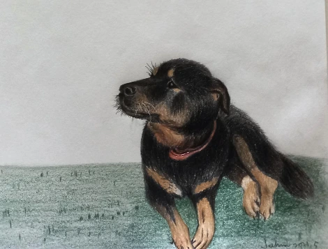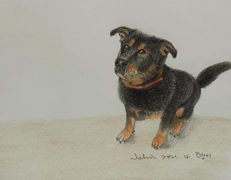 우리 집 수문장 탱이. 2010년 생이다. 11살. 수컷. 최장길이(어깨부터 엉덩이 끝까지) 약 70cm, 몸무게 30킬로가량 되는 대형견이다. 눈 위의 점박이를 '탄'이라고 부르는데 탱이는 네눈박이 탄이다. 아빠견은 로트 와일러, 엄마견은 골든 레트리버 몽실이었다. 몽실이는 10마리의 새끼들을 낳았고 탱이는 그중 한 마리였다. 몽실이 새끼들은 모두 건강했고 우리 부부는 온통 새까만 탱이가 눈에 들어와 집으로 데리고 왔다. 태어난 지 20일 되는 날이었고 내 품에서 컸다. 탱이의 형제들은 탱이처럼 주변 이웃들에게 분양되었으나 이런저런 이유들로 모두 죽고 탱이만 유일하게 살아남았다. 이제 나이를 먹은 탱이는 온통 까맣던 털이 부분적으로 모견의 털과 같은 갈색으로 변화되고 있다.