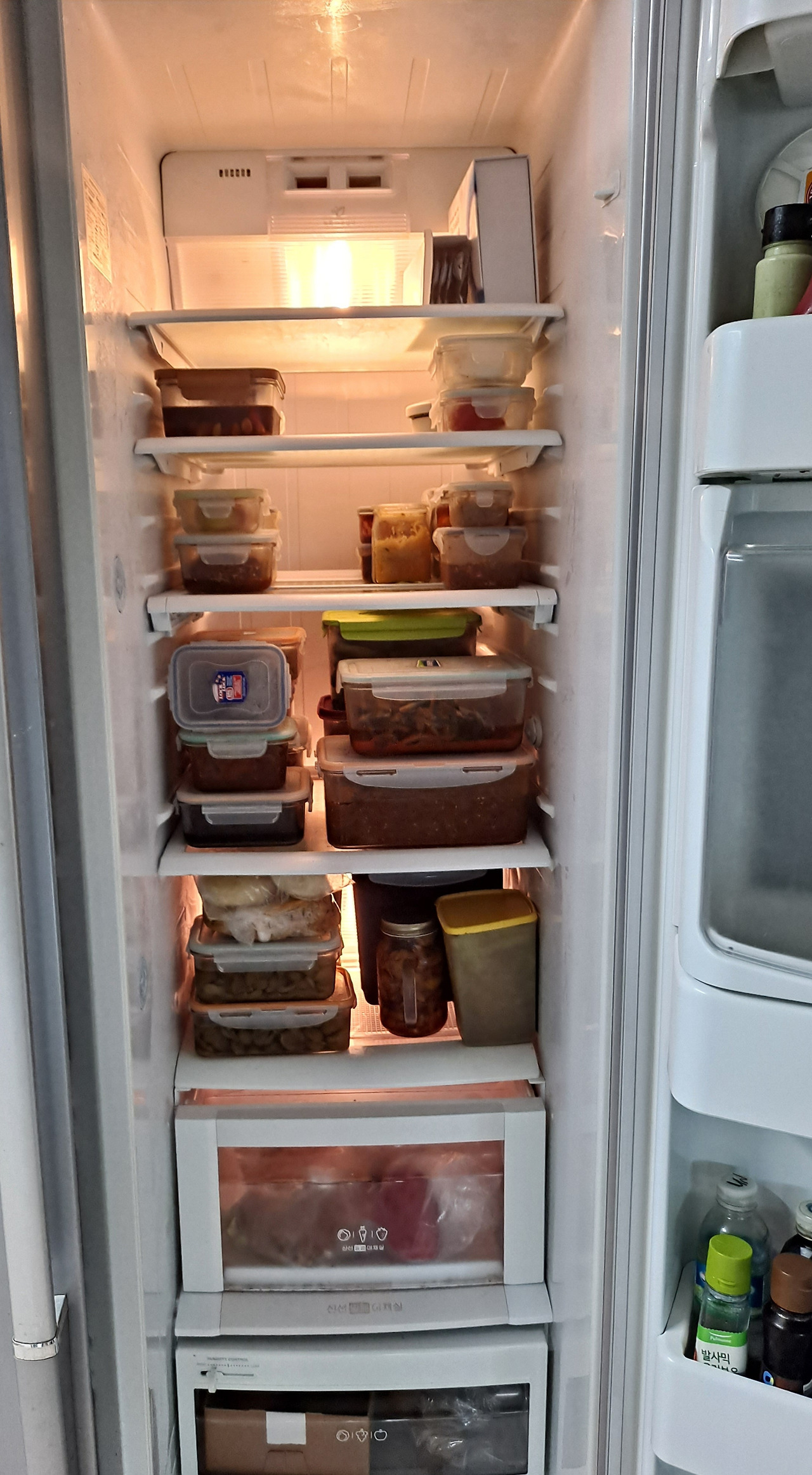 그리고 냉장고 속을 테트리스 하듯 꽉꽉 채워 넣는다.
