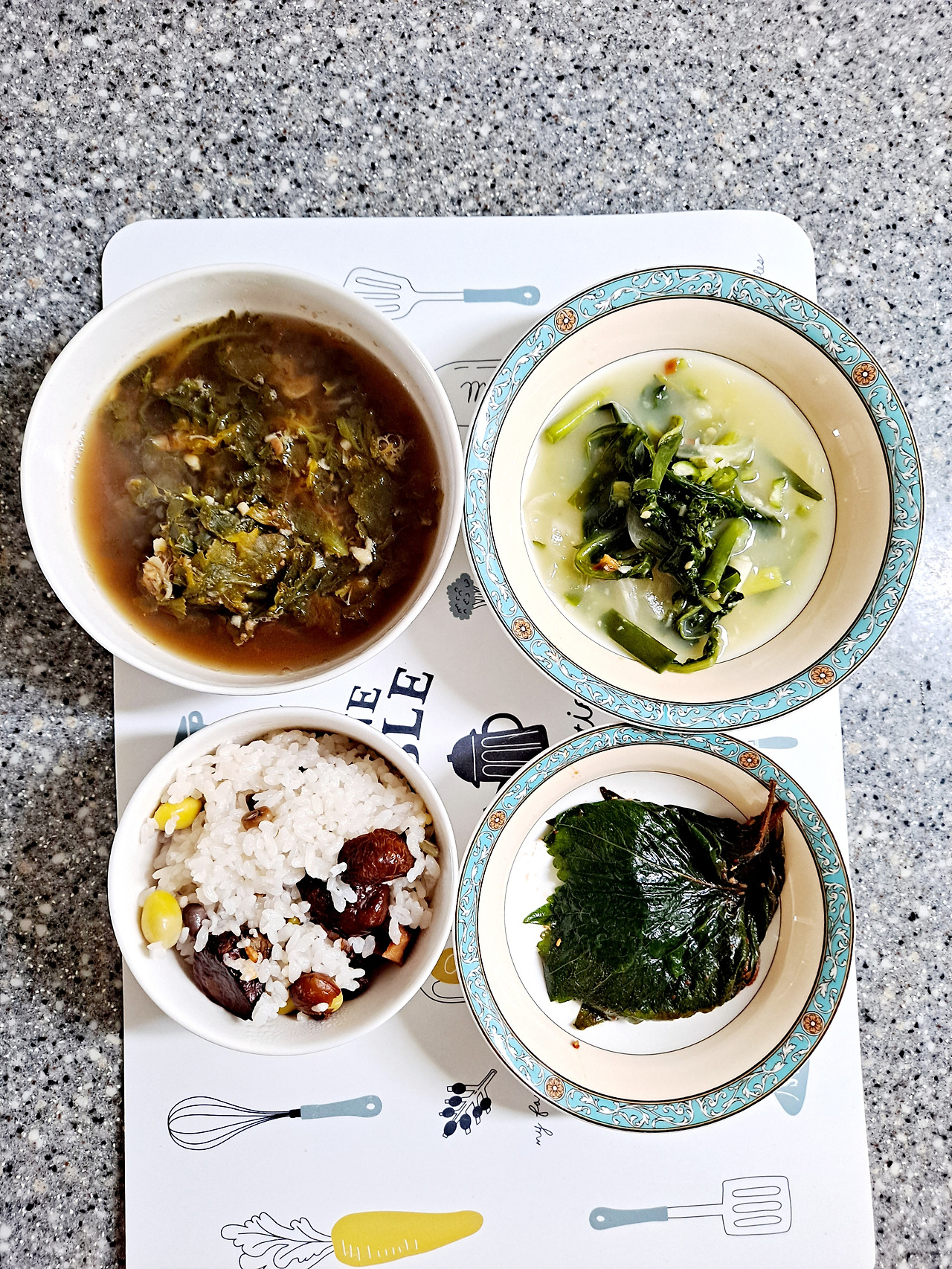 자세히 보니 냉이도 있고, 취나물로 보이는 삶은 나물도 있고, 또 알 수 없는 풀들도 있다.