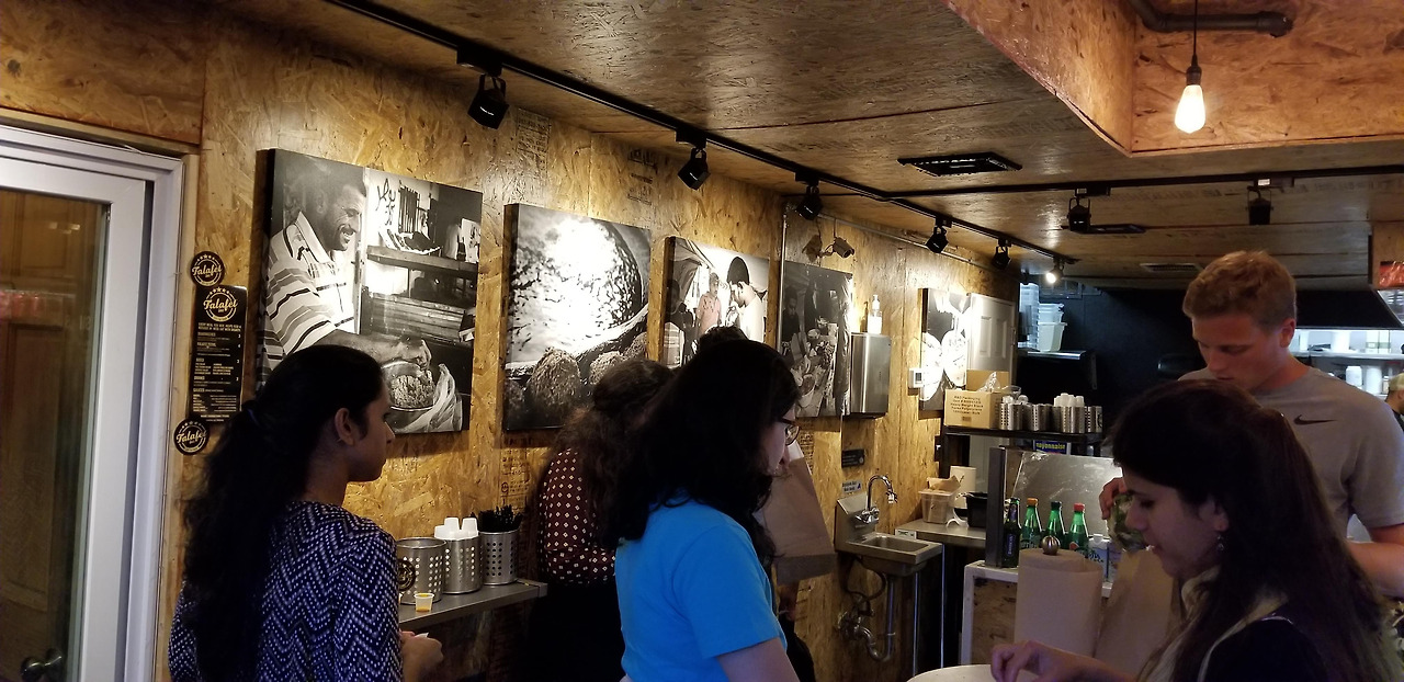 미국에 돌아와서는 가끔씩 런던에서 먹은 팔라펠 샌드위치의 맛이 생각나서 몇몇 레스토랑에서 시도해 보았지만 역시나 이렇다 할 성공은 없었다 (이거다 할만한 맛있는 팔라펠을 찾지 못했다). 그래서 한참 동안 팔라펠을 먹지 않았는데 어느 순간 다시 팔라펠 생각이 났다. 고기를 너무 많이 먹는 것 같아 한 끼라도 좀 줄이자는 생각 30%와 런던에서 먹었던 맛있는 팔라펠을 다시 한번 찾고 싶다는 생각 30%, 그리고 동네에서 새로운 메뉴/맛집을 발견하고 싶다는 생각 40%가 모여 DC 근처의 팔라펠 집을 뒤져 보았다. 오픈한 지 그리 오래되지 않은 두 곳의 팔라펠 가게가 꽤 좋은 평을 받고 있었다. 한 곳은 중동/이스라엘 현지의 정통 팔라펠을 저렴한 가격에 파는 hole-in-the-wall (매우 허름하고 작은 식당을 일컫는 말)이었고 다른 하나는 뉴욕에서 꽤나 인기를 끈 후 DC에 첫 매장을 연 힙한 팔라펠 전문점이었다.