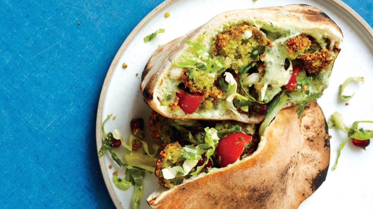 녹색 팔라펠과 폭신한 피타, 감칠맛 나는 소스의 조화