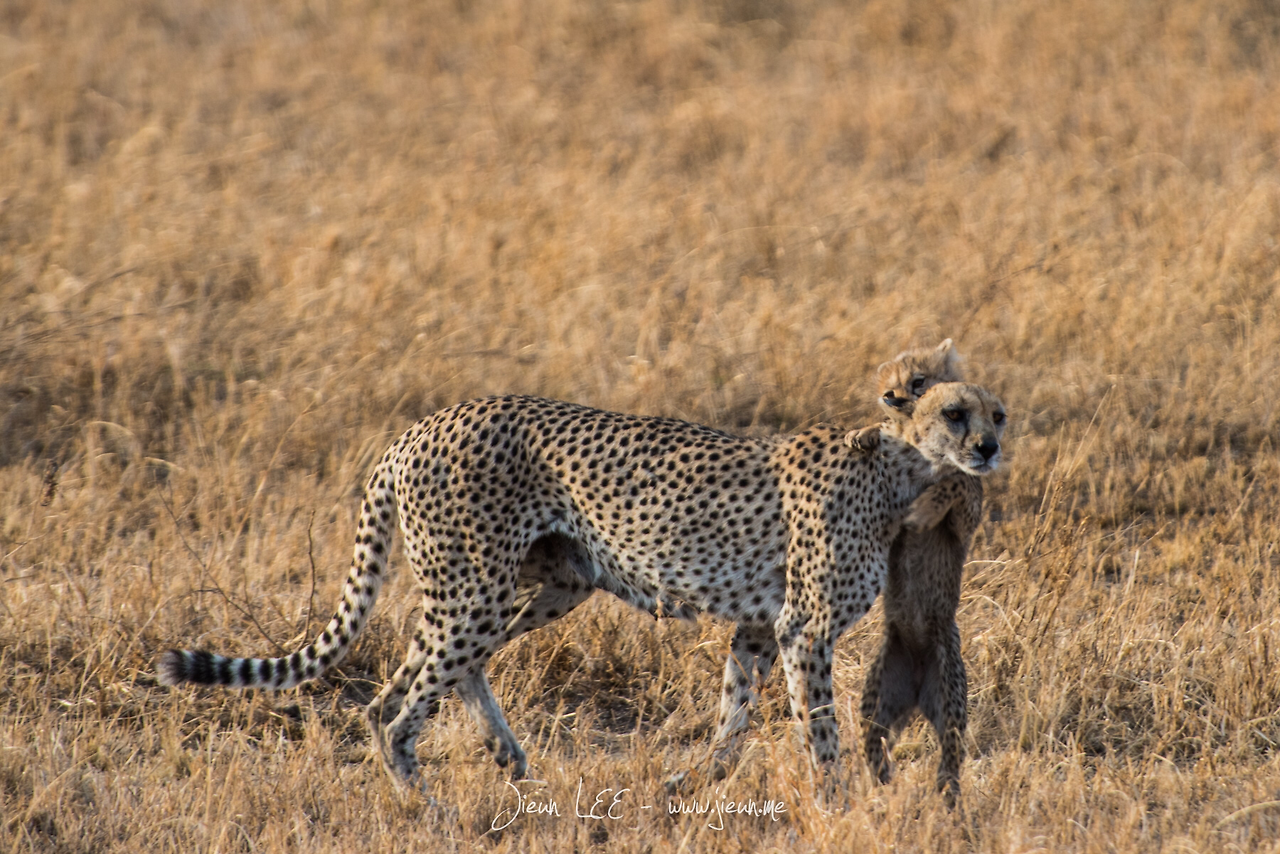 아침마다 우리를 반기는 건 다름 아닌 치타 가족이다. 나는 운이 좋게도 세렝게티를 여행하는 동안 아침마다 치타를 볼 수 있었다. 아직 털갈이를 하는 새끼 치타는 어찌나 장난을 치고 싶어 하는지 잠시도 가만있지 못한다. 세상에 나온 지 이제 겨우 몇 달밖에 안돼 보이는 새끼 치타에게 이 세상은 너무나도 즐거운 놀이동산이다. 마른 나뭇가지 하나도 그냥 지나치는 법이 없고, 뛰다가 구르다가 어미 치타에게 얼굴을 비비며 사랑을 표시한다.