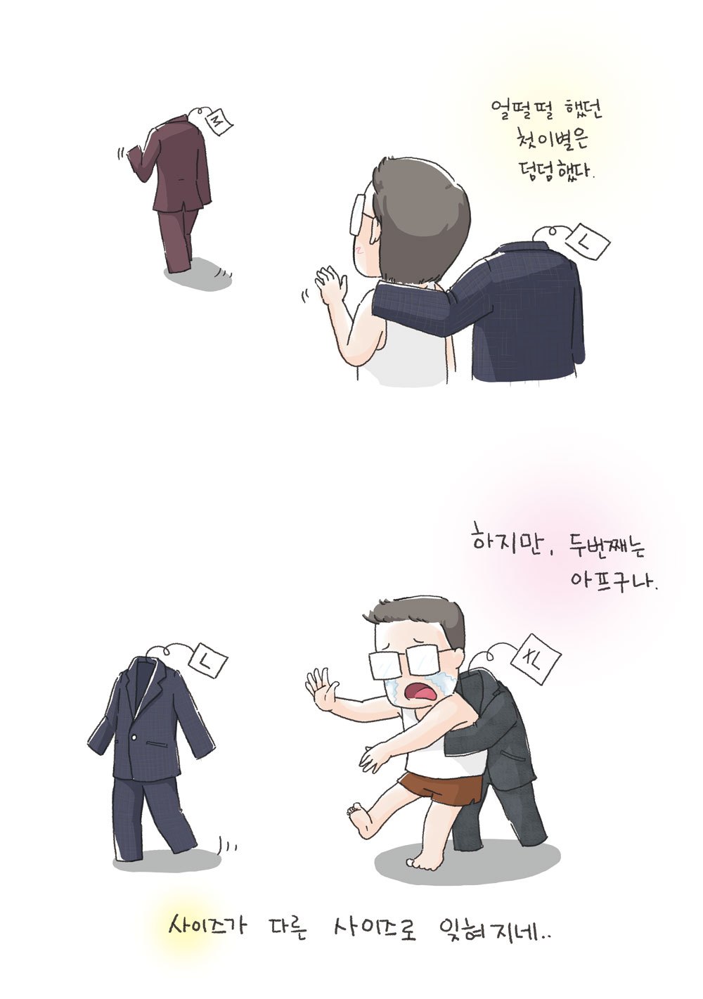작년부터 정장을 사러 가면 내가 인정할 수 없는 사이즈의 옷을 자꾸 추천해줘서 살 빼고 산다고 버티고 버티다가 결국 옷 한 벌 사지 못하였는데, 이번에 살이 좀 빠졌으니 여름에는 간편복(회사에서 여름에만 제공하는 유니폼형태의 카라티셔츠이다)으로 버티고 가을에 뉴 정장을 구입, 착용하려고 마음을 먹었다.