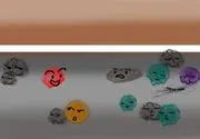 빨간 보풀은 데굴데굴 어두운 옷장 밑 구석으로 굴러 갑니다. 다들 누군가에 한숨에 날아온 걸까요? 옷장 밑에는 다른 보풀들이나 머리카락 뭉치, 작은 구슬 같은 친구들이 잔뜩 먼지화장을 하고 모여 있습니다. 빨간 보풀은 친구들에게 말을 걸어봅니다.