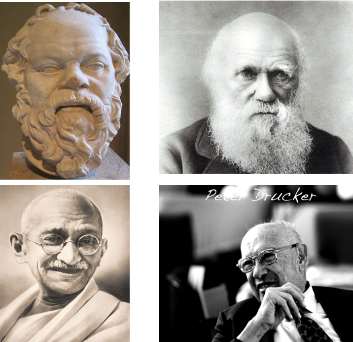 예를 들어 세계를 변화시킨 사람으로서 필자는 4명을 우선 생각한다. 물론, 대단히 탁월한 사람들이다. 보통 사람들이 이런 위대함을 반드시 지향할 수는 없겠지만, 올바른 경력이란 곧 충만한 인생을 이끈다는 점에서 영감을 주는 사람으로 새겨볼 만하다. 이들은 거의 전 인생을 통해서 위대한 질문을 제기했고, 그 답을 찾기 위해 행동했다. 그 행동은 다른 사람의 인식을 바꾸고 행동을 바꿨고 결국 세계를 변화시키는 영향력을 창출했다.