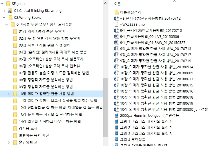 브런치에 글을 올릴 수 있었던 이유는 2015년에 ‘미생을 위한 업무 가이드’라는 주제로 강의한 컨텐츠가 있었기 때문이다. 이 컨텐츠의 시초는 강의할 때 했던 말들을 모두 적은 raw data였다. 실제 강의한 것을 녹화한 후 여러 번 들어가며 raw data로 남겼기 때문에 이 때 함께 고생한 팀원 분들이 있었다. (이 분들에게도 고마운 마음이 있다.)