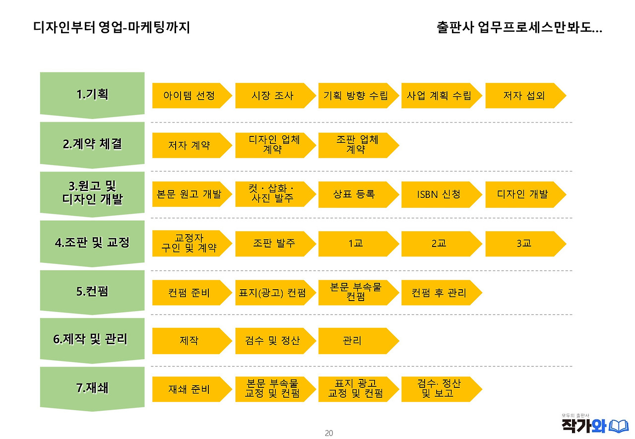 종이책은 출간까지의 세부 프로세스가 전자책과 조금 다릅니다. 우선 큰 프로세스를 말하자면 기획을 하고요 작가랑 출판사랑 계약을 합니다. 그런데 자비출판은 내가 글을 쓰고 직접 출판하는 것이니까 계약서는 필요 없겠죠. 내가 나를 배신할 일은 없으니까요.