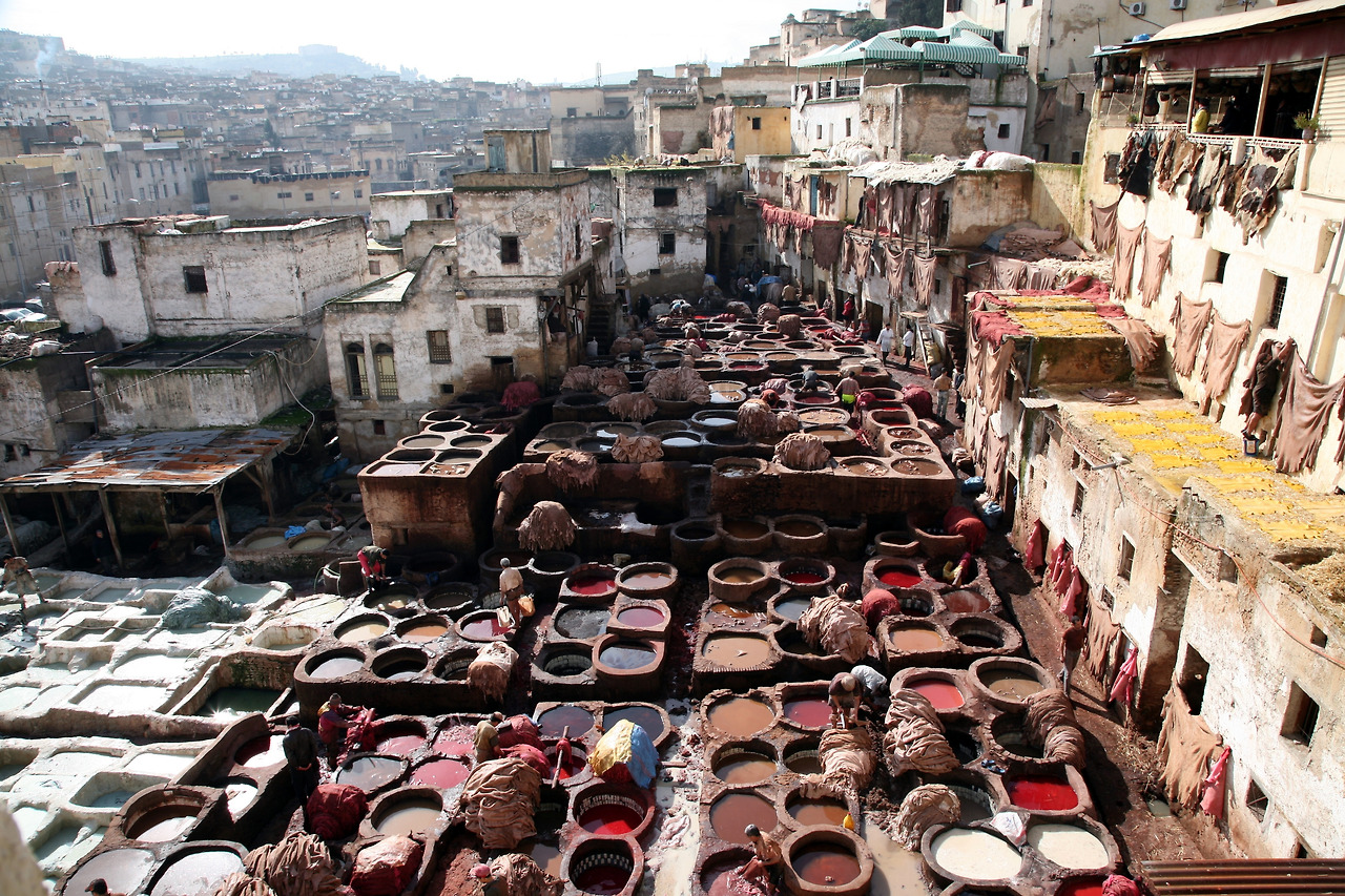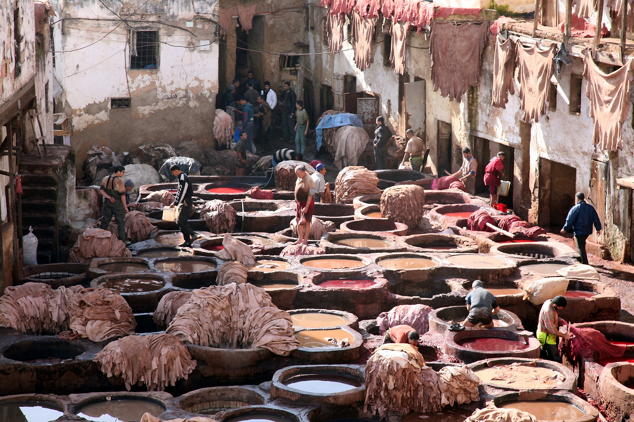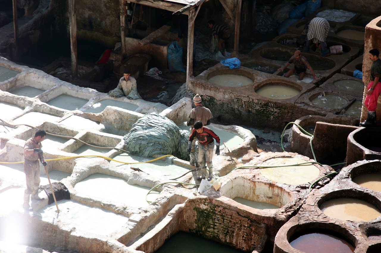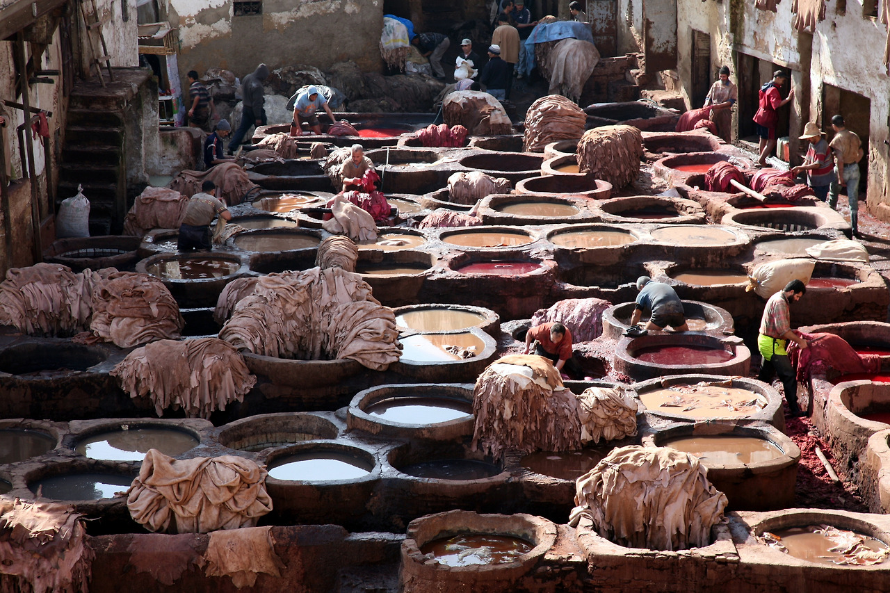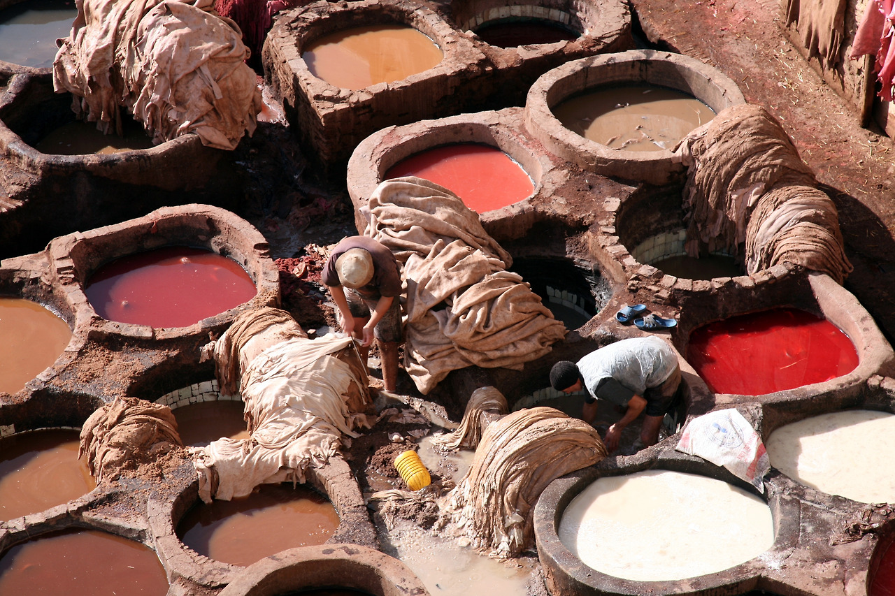 사하라 사막과 더불어 모로코를 대표하는 관광 명소인 테너리 Tennery는 천년 고도 古都 페스의 가죽 염색 공장을 일컫는 말로서 수백년 전의 야생적인(?) 방법 그대로 가죽을 염색하는 거대한 야외 공장이다. 가죽을 15일 동안 말리는 작업부터 시작하여 비둘기 똥을 이용한 탈색 과정을 거쳐 염료가 담긴 구덩이에 가죽을 넣어 염색하는 작업까지 그야말로 코를 찌르는 악취와 함께 쉬지 않고 진행되는, 진정한 노가다의 현장이라고 할 수 있다. 관광객들이 이 지독한 악취를 견딜 수 있도록 입구에서 박하잎을 나눠주었지만, 사람의 인체란 너무도 신비하여 처음엔 난생 처음 겪어보는 악취에 경악을 금치 못하다가도 5분쯤 지나자 코에 아무런 감각이 없어지면서 충분히 견딜만한 수준이 되었다는.