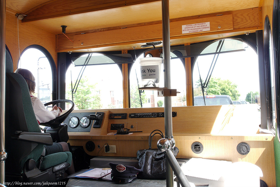 매표소 옆 정류장으로 가니 마침 빨간색 트롤리가 우리를 기다리고 있었고, 빨간색 트롤리에 어울리는 빨간색 베스트를 입은 기사님께서 우리를 환한 웃음으로 맞아주셨다.