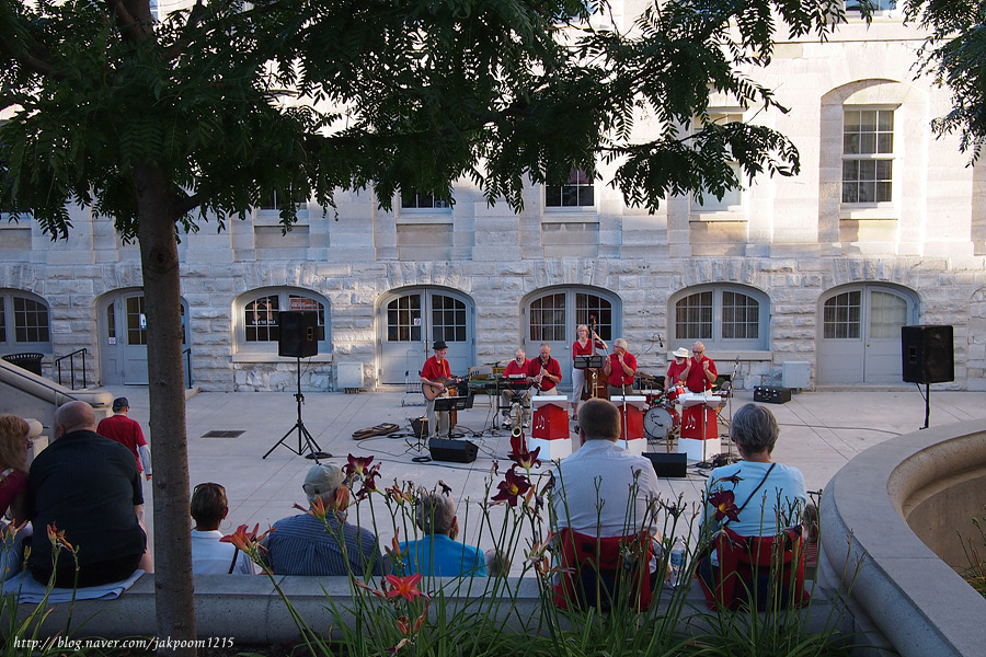 따뜻하고 불그스레한 저녁 무렵의 노을빛 햇살이 광장을 비추고 있었고 딱 알맞게 서늘한 바람이 불고 있었다. 그리고 머리가 희끗희끗하신 어르신 연주자들이 들려주시는 음악이 마치 저녁노을처럼 마을 곳곳에 흩어지고 있었다. 그러고 보니 광장에 모인 사람들 역시 대부분 나이가 꽤 있으셨던 기억이다.