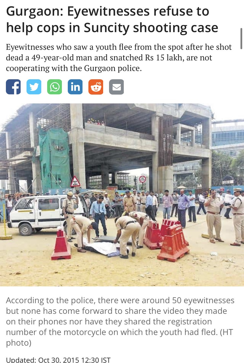 시간이 지나고 며칠 뒤, 어느 날처럼 기사 동향을 위해 현지 신문사를 뒤지다가 얼마 전 살인사건의 전말을 알게 되었다. 그의 이름은 Anil Kumar Shukla씨. 나이 49세. 9년동안 일하던 택배회사에서 고용주를 대신 해 한달에 두번 은행에서 대금을 받아서 가던 그는 수요일 아침 총에 맞아 사망했고 가해자는 그가 15 lakh (약 2500만원) 현금을 가지고 있을 것이라고 알고 출발지부터 따라오게 되었다는 것을 알게 되었다.