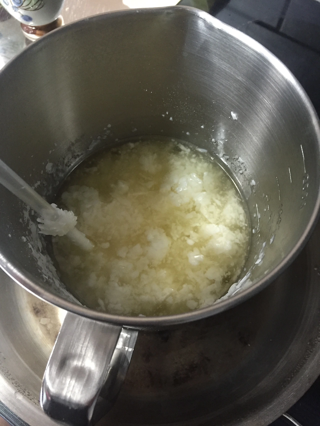 당연히 캔들을 만들 그릇을 정하고 이 그릇의 용량을 계산한다. 이를 토대로 왁스를 계량하고 중탕으로 녹이기 시작한다.
