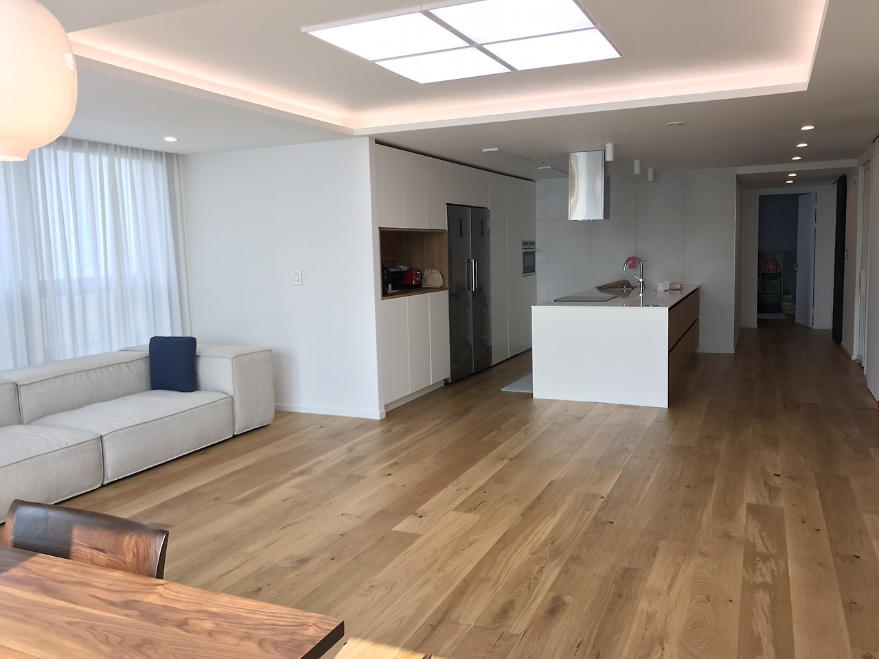 당연히 폭이 좁은 원목마루보다는 폭이 넓은 광폭 원목마루가 설치 시 더욱 이쁘게 보였다.