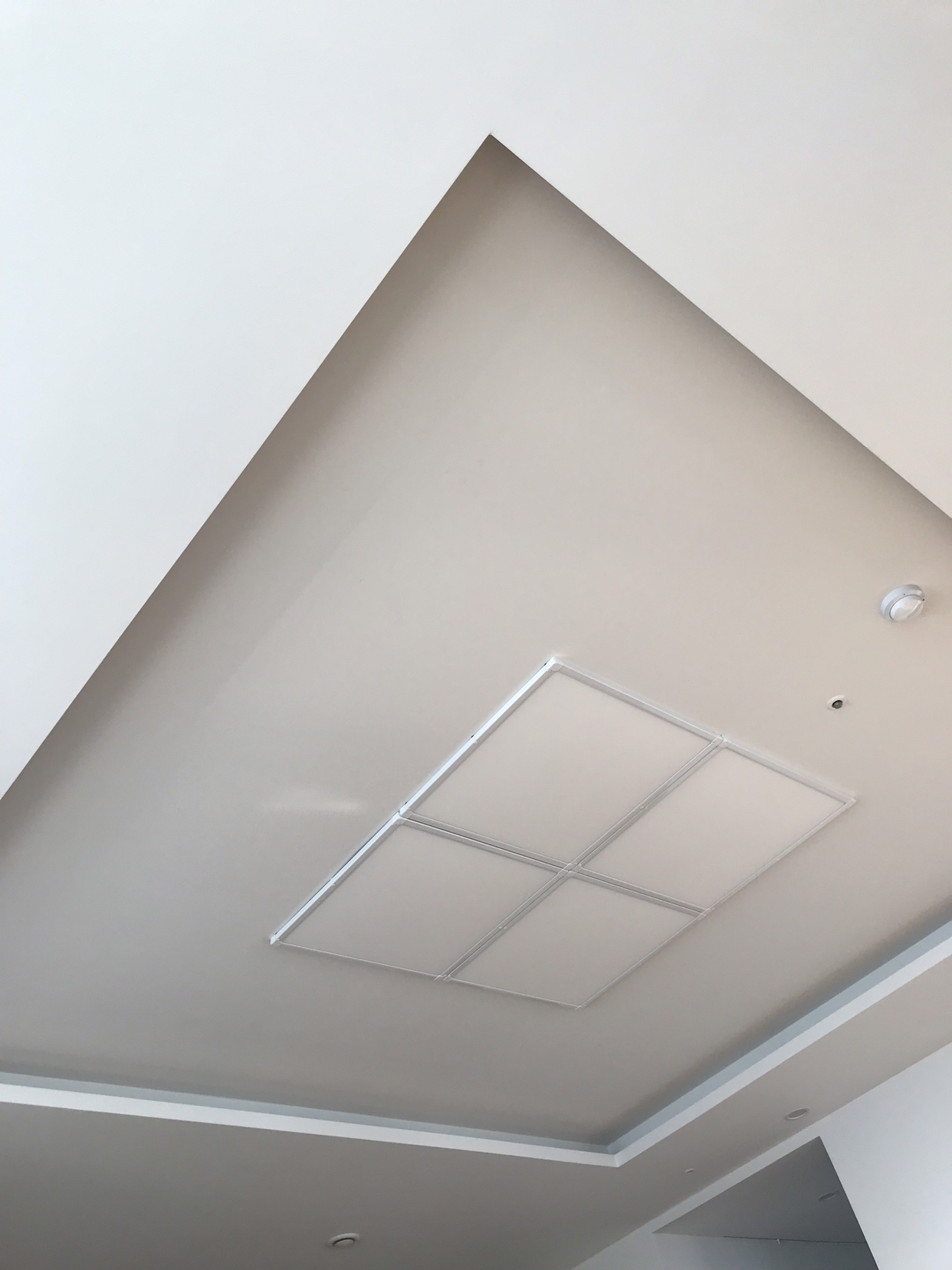 솔라루체 더 엣지 640*640 50W를 4개를 합쳤다. 일반적으로 이러한 형태는 보질 못했다. 하지만, 밝은 거실을 위해 추진했다. 솔직히 나 역시 이렇게 설치하면 너무 밝을 수도 있다고 생각했다. 또한, 너무 과하게 공간을 차지하게 되어 인테리어에 역효과가 날 수 있다고 판단했다. 하지만, 설치하니 예상외로 아리따웠다. 솔라루체 더 엣지 4개와 주변 LED T-5 간접등은 잘 어울렸다.