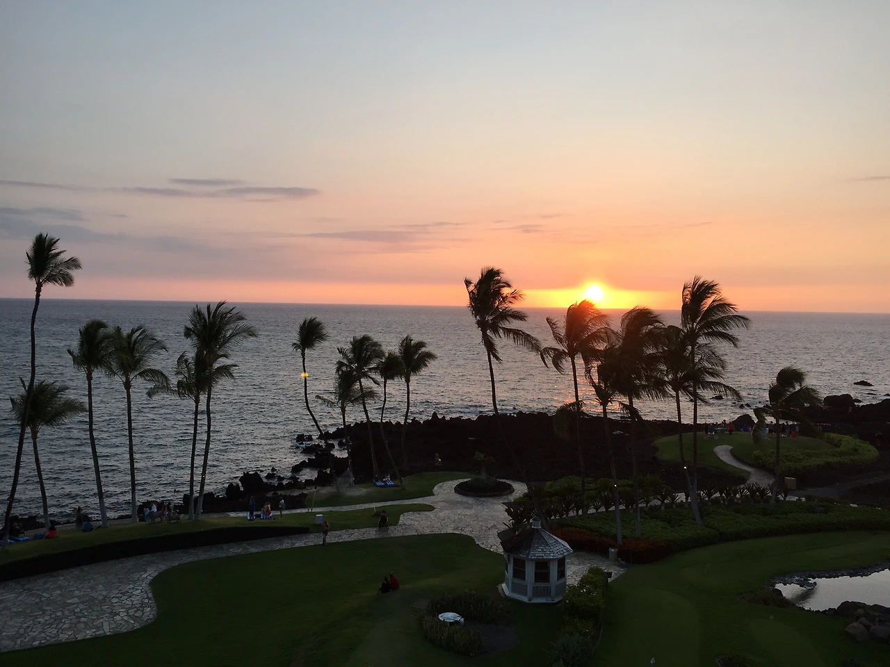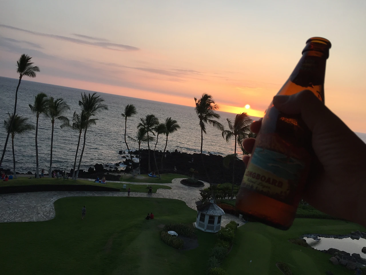 힐튼 와이콜로아 빌리지(Hilton Waikoloa Village)는 3개의 타워로 구성되어 라군타워, 오션타워, 팰리스타워로 구분된다. 힐튼 아너스 멤버라 사전에 오션타워 중에서 가장 높은 층으로 바다 전경으로 방을 받아 놓았다. 이 곳에서 바라보는 석양은 한 폭의 그림이 되기에 4박하는 동안 석양과 함께 코나 브루잉 롱보드 맥주를 마셨다.