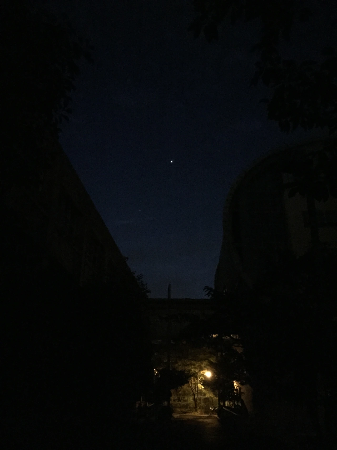 첫 번째 사진에서 금성과 목성이 선명히 보이지만 목성 바로 위에 있는 화성이 잘 보이지 않는다. 금성과 목성의 위치를 토대로 화성이 존재할 만한 곳을 유심히 쳐다봐야 보이는데 희미하게 보였던 것이 화성인지는 아직도 의문이 생긴다. 어쩔 수 없이 내일 또다시 바라볼 것이다. 아직 다들 잠들어있는 시각, 금성과 목성과의 만남은 언제나 설레다. 거기에 그믐달까지 덧붙인다면야 무엇을 더 바라랴. 한동안 넋 놓고 바라보며 새로운 하루를 시작했다. 내일도 그러할 것이다.