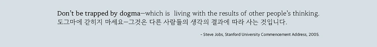 ‘Don’t be trapped by dogma-which is living with the results of other people’s thinking’ (도그마에 갇히지 마세요.-그것은 다른 사람들의 생각의 결과에 따라 사는 것입니다.)