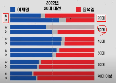 20대 남성은 과반이상 윤석열 후보를 지지했고,