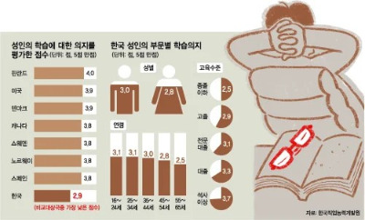 한국 성인의 학습 의지는 회원국 중 최하위다.