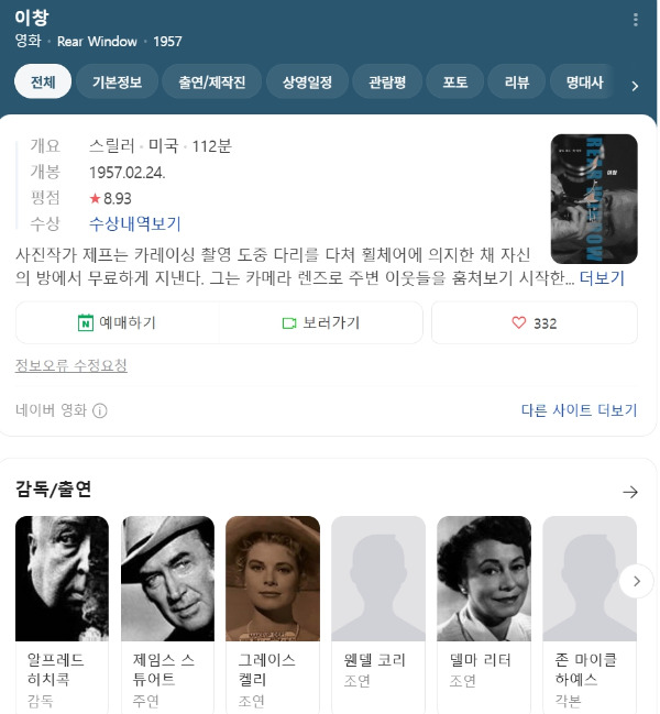 휠체어에 갇힌 사진작가 제프의 고립감을 증폭시키고, 건너편 집에 대한 관음적 심리를 잘 표현 하였다.