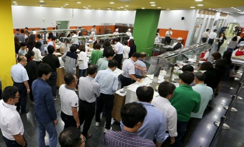 식당 줄은 가축 사료 배급 줄과 닮았다.