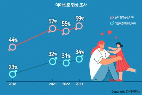 특히 30-40대 여성들의 딸 선호도는 40%를 넘었다고 한다.