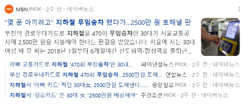 무임승차한 30대 여성 직장인이 2,500만 원을 배상하라는 판결을 받았다.