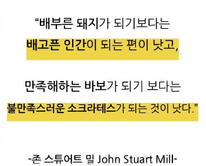 “배부른 돼지보다 배고픈 소크라테스가 되고 싶다”고 말하지만 확실한건