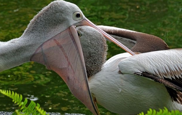 펠리컨은 자신의 부리 주머니에 새끼들을 위한 먹이를 담고,