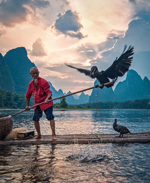 리장강 위에서 고요히 앉아 있는 가마우지를 보고 있노라면,