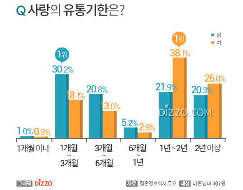 미혼남녀 56%가 '사랑의 유통기한이 있다'고 답했다는 것이다.