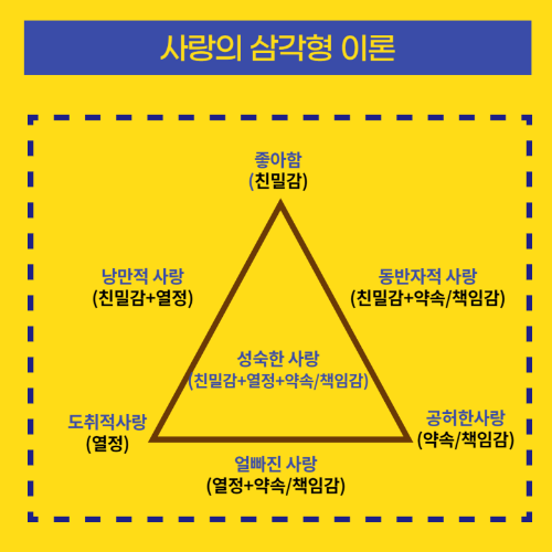 가장 이상적인 사랑은 친밀감을 바탕으로 열정과 헌신이 결합된 성숙한 사랑이다.